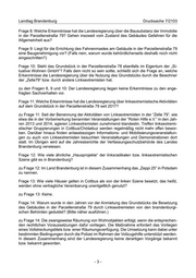 Landtag Brandenburg Drucksache 7/2103 Frage 8: Welche Erkenntnisse hat die Landesregierung über die Bausubstanz der Immobilie in der Parzellenstraße 79? Gehen insoweit vom Zustand des Gebäudes Gefahren für die Allgemeinheit aus? Frage 9: Liegt für die Errichtung des Fahnenmastes am Gebäude in der Parzellenstraße 79 eine Baugenehmigung vor? (Falls nein, warum wurde behördlicherseits deshalb noch nicht eingeschritten?) Frage 10: Steht das Grundstück in der Parzellenstraße 78 ebenfalls im Eigentum der „Si- tuative Wohnen GmbH“? Falls dem nicht so sein sollte, schließt sich die Frage an, welche Erkenntnisse die Landesregierung über die Nutzung des Grundstücks durch die Bewohner der „Zelle79“ bzw. durch andere Linksextremisten hat. zu den Fragen 8, 9 und 10: Der Landesregierung liegen keine Erkenntnisse zu den ange- fragten Sachverhalten vor. Frage 11: Welche Erkenntnisse hat die Landesregierung über linksextremistische Aktivitäten auf dem Grundstück in der Parzellenstraße 79 seit 2017? zu Frage 11: Seit der Benennung der Aktivitäten von Linksextremisten in der “Zelle 79”, wie etwa die in der Vorbemerkung benannten Veranstaltungen der “Roten Hilfe e.V.” in den Jah- ren 2013 und 2014, agieren Linksextremisten zunehmend klandestin. Treffen linksextremi- stischer Gruppierungen in Cottbus/Chóśebuz werden regelmäßig nicht mehr offen bewor- ben. Darüber hinaus finden anlassbezogen Informations- und Mobilisierungsveranstaltun- gen zu auch von Linksextremisten besuchten Veranstaltungen und Demonstrationen dort statt. Im Übrigen wird auf die Jahresberichte der Verfassungsschutzbehörde des Landes Brandenburg verwiesen. Frage 12: Wie viele ähnliche „Hausprojekte“ der linksradikalen bzw. linksextremistischen Szene gibt es in Brandenburg? zu Frage 12: Im Land Brandenburg ist in diesem Zusammenhang das „Zeppi 25“ in Potsdam zu nennen. Frage 13: Wie viele Häuser gelten in Cottbus als von der linken Szene besetzt, das heißt, werden ohne vertragliche Vereinbarung unentgeltlich genutzt? zu Frage 13: Keine. Frage 14: Warum wurde in den Jahren vor der Anmietung des Grundstücks die Besetzung des Gebäudes in der Parzellenstraße 79 durch Linksextremisten von den brandenburgi- schen Behörden geduldet? (Bitte näher ausführen.) zu Frage 14: Die zwangsweise Räumung von Wohnobjekten erfolgt, wenn die entsprechen- den rechtlichen Voraussetzungen dafür vorliegen. Die Maßnahme erfordert das Vorliegen eines Vollstreckungstitels bzw. einer Räumungsverfügung. Die Umsetzung kann dabei unter bestimmten Bedingungen durch die Polizei im Rahmen der Vollzugshilfe unterstützt werden. In diesem Zusammenhang sind der Landesregierung keine derartigen Vorgänge bekannt bzw. bekannt geworden. -3-