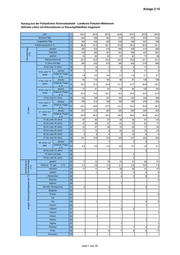 Anlage 2. 14 Polizeiliche Kriminalstatistik - Landkreis Ostprignitz-Ruppin Nichtdeutsche TV nach dem Grund des Aufenthalts Berichtszeitraum: 2019 nichtdeutsche Tatverdächtige gültige Werte bis 31.12.2017 Status des erlaubten Aufenthalts (aus Spalte 8) Altwerte bis 31.12.2017 Aufenthalt Anlass des erlaubten Aufenthalts (aus Spalte 8) aus Spalte 11 Asylverfahren S E Schlüsselzahl der Tatver- Straftat X Straftat dächtig Stationierungs- Tourist/ Kontingent-/ U Schüler/ Arbeit- Gewerbe- S insgesamt Anzahl in % unerlaubt erlaubt streitkräfte und Durch- Sonstige Schüler Student Bürgerkriegs- gesamt Asyl- Schutz- und Duldung Sonstiger Student nehmer treibender Angehörige reisender flüchtlinge bewerber Asylberechtigte, erlaubter Kontingentflüchtlinge Aufenthalt 1 2 3 4 5 6 7 8 9 10 11 12 13 14 15 16 17 18 19 20 21 22 734828 Unerl. Handel in ngM von Cannabis und Zubereitungen M 3 0,0 0 0 0 734828 Unerl. Handel in ngM von Cannabis und Zubereitungen W 0 0 0 734828 Unerl. Handel in ngM von Cannabis und Zubereitungen G 3 0,0 0 0 0 734840 Unerl. Herstellung in ngM M 2 0,0 0 0 0 734840 Unerl. Herstellung in ngM W 1 0,0 0 0 0 734840 Unerl. Herstellung in ngM G 3 0,0 0 0 0 734848 Unerl. Herstellung in ngM von Cannabis und Zubereitungen M 2 0,0 0 0 0 734848 Unerl. Herstellung in ngM von Cannabis und Zubereitungen W 1 0,0 0 0 0 734848 Unerl. Herstellung in ngM von Cannabis und Zubereitungen G 3 0,0 0 0 0 890000 ST insgesamt, o. Verst. g. Aufenth.-, Asyl- u. FreizügigkeitsG/EU M 320 25 7,8 25 25 3 2 1 3 19 890000 ST insgesamt, o. Verst. g. Aufenth.-, Asyl- u. FreizügigkeitsG/EU W 46 1 2,2 1 1 1 890000 ST insgesamt, o. Verst. g. Aufenth.-, Asyl- u. FreizügigkeitsG/EU G 366 26 7,1 26 26 3 2 1 3 20 891000 Rauschgiftkriminalität M 320 25 7,8 25 25 3 2 1 3 19 891000 Rauschgiftkriminalität W 46 1 2,2 1 1 1 891000 Rauschgiftkriminalität G 366 26 7,1 26 26 3 2 1 3 20 894000 Cybercrime insgesamt M 2 0,0 0 0 0 894000 Cybercrime insgesamt W 0 0 0 894000 Cybercrime insgesamt G 2 0,0 0 0 0 894100 Cybercrime im engeren Sinne M 1 0,0 0 0 0 894100 Cybercrime im engeren Sinne W 0 0 0 894100 Cybercrime im engeren Sinne G 1 0,0 0 0 0 894200 Cybercrime-Tatmittel M 2 0,0 0 0 0 894200 Cybercrime-Tatmittel W 0 0 0 894200 Cybercrime-Tatmittel G 2 0,0 0 0 0 894210 Tatmittel Internet M 2 0,0 0 0 0 894210 Tatmittel Internet W 0 0 0 894210 Tatmittel Internet G 2 0,0 0 0 0 Seite 26 von 26