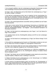 Landtag Brandenburg Drucksache 7/380 2. Ist es insoweit zutreffend, dass die Landesregierung finanzielle Zuwendungen an einen nicht rechtsfähigen Personenzusammenschluss auszahlt? (Bitte begründen.) Zu Frage 2: Nein. Zur Begründung wird auf die Antwort der Landesregierung zu Frage 1 der Kleinen Anfrage 14 verwiesen. 3. Wie stellt die Landesregierung sicher, dass im möglichen Fall der zweckwidrigen Ver- wendung der finanziellen Förderung diese ganz oder teilweise zurückgefordert werden kann, wenn die Zuwendung an einen nach Einschätzung der Landesregierung losen, nicht rechtsfähigen Personenzusammenschluss erfolgt? Zu Frage 3: Die zuwendungsrechtlichen Vorschriften werden grundsätzlich bei der Projekt- förderung beachtet. 4. Wer wäre in einem solchen Fall der zweckwidrigen Verwendung von Geldmitteln nach Auffassung der Landesregierung derjenige, der rechtlich dafür einzustehen hat, wenn doch die „Flüchtlingshilfe Jüterbog“ - wie mitgeteilt - „ohne formalisierte Rechtsform“ am Rechtsleben teilnehme? Zu Frage 4: Auf die Antwort der Landesregierung zu den Fragen 1 und 3 der Kleinen An- frage 14 wird verwiesen. 5. Zu welchem Zweck wird die „Flüchtlingshilfe Jüterbog“ seit 2016 von der Landesregie- rung gefördert? Zu Frage 5: Auf die Antwort der Landesregierung zu Frage 2 der Kleinen Anfrage 14 wird verwiesen. 6. Wie erklärt die Landesregierung den Zuwachs von Fördermitteln innerhalb von drei Jah- ren um nahezu das 18-Fache im Vergleich zur ursprünglichen Fördersumme? Zu Frage 6: Der Zuwachs erklärt sich durch einen erhöhten Bedarf an Integrationsbeglei- tung und mit dem steigenden Engagement der Flüchtlingshilfe Jüterbog. 7. Warum wird für das Jahr 2018 eine Fördersumme von 12.090 Euro ausgewiesen, ob- wohl im selben Jahr ein Scheck an die „Flüchtlingshilfe Jüterbog“ mit deutlich höherer Summe übergeben wurde? Zu Frage 7: Der Scheck, der am 16.08.2018 übergeben wurde, bezieht sich auf die Förde- rung des Projektes „Treffpunkt ‚Arche‘ in Jüterbog“ im Jahr 2019. 8. Welche Kenntnisse hat die Landesregierung zu den Vertuschungen von Straftaten durch Personen der „Flüchtlingshilfe Jüterbog“? 9. Wurde bereits ein Ermittlungsverfahren gegen die Sprecherin der „Flüchtlingshilfe Jü- terbog“ wegen Strafvereitelung (§ 258 StGB) aufgrund des oben geschilderten Sachver- halts eingeleitet? (Wenn dem nicht so sein sollte, warum nicht?) -2-