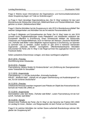 Landtag Brandenburg Drucksache 7/650 Frage 4: Welche neuen Informationen die Organisations- und Kommunikationsstrukturen dieser Gruppierung liegen vor? Gab es Veränderungen? zu Frage 4: Nach derzeitiger Eigendarstellung des „Der III. Weg“ existieren für das Land Brandenburg die Stützpunkte Uckermark, Mittelmark/Havel und Potsdam/Mittelmark. Diese gehören zu einem „Gebietsverband Mitte“. Frage 5: Welche Aktivitäten hat die Gruppierung im Jahr 2019 in Brandenburg entfaltet? Bei welchen Gelegenheiten und Aktivitäten trat sie mit welcher Personenstärke auf? zu Frage 5: Mitglieder und Sympathisanten der Partei „Der III. Weg“ traten im Jahr 2019 zumeist durch Flugblattverteilungen sowie Plakataktion und Infoständen anlässlich der Europawahl öffentlich in Erscheinung. Einen Schwerpunkt bildeten die Stützpunkte Uckermark und Potsdam/Mittelmark. Auch im Rahmen der Aktionen „Deutsche Winterhilfe“ und „Tierfutter statt Böller“ traten Mitglieder regional begrenzt in Erscheinung, um Spenden zu sammeln bzw. zu verteilen. Zudem wurden im Jahr 2019 in mehreren Gemeinden sogenannte „nationale Streifen“ durchgeführt. Öffentlichkeitswirksame Aktivitäten dokumentiert die Partei „Der III. Weg“ in der Regel auf ihren frei zugänglichen Internet- und Facebook-Seiten. Sofern polizeiliche Erkenntnisse vorlagen, sind diese nachfolgend aufgeführt: 26.01.2019 - Prenzlau Durchführung eines Infostandes 04.03.2019 - Potsdam Flyerverteilung „Härtere Strafen für Kinderschänder“ und „Einführung der Zwangskastration sowie Todesstrafe für Sexualtäter“ 12.11.2019 - Angermünde Flyerverteilung u. a. mit den Aufschriften „Kriminelle Ausländer RAUS!“, „Multikulti tötet!“, „Kämpft mit uns gegen Überfremdung und Ausländergewalt“ so- wie „Für ein sicheres Deutschland“ 24.12.2019 - Prenzlau Unbekannte Personen brachten insgesamt zwei Plakate am Objekt des Kreisverbandes Uk- kermark der Partei DIE LINKE an 27.12.2019 - Angermünde Sammelaktion unter dem Motto „Tierfutter statt Böller“, zudem Flyerverteilung mit der Auf- schrift „Tierfutter statt Böller“ 28.12.2019 - Templin Versand einer Postkarte der Partei „Der III. Weg“ an den Sprecher der Fraktion DIE LINKE im Landtag für Innen-, Medien- und Religionspolitik mit dem Portrait von Rudi Dutschke Frage 6: An welchen Aktivitäten der rechten Szene außerhalb Brandenburgs nahmen Mit- glieder der Gruppierung teil? -2-