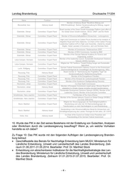 Landtag Brandenburg Drucksache 7/1204 10. Wurde das PIK in der Zeit seines Bestehens mit der Erstellung von Gutachten, Analysen oder Ähnlichem durch die Landesregierung beauftragt? Wenn ja, um welche Vorhaben handelte es ich dabei? Zu Frage 10: Das PIK wurde mit den folgenden Aufträgen der Landesregierung Branden- burg betraut: Geschäftsstelle des Beirats für Nachhaltige Entwicklung beim MUGV; Ministerium für Ländliche Entwicklung, Umwelt und Landwirtschaft des Landes Brandenburg; Zeit- raum 01.06.2011-31.05.2014; Bearbeiter: Prof. Dr. Manfred Stock Entwicklung von abrechenbaren Indikatoren für die Nachhaltigkeitsstrategie des Lan- des Brandenburg; Ministerium für Ländliche Entwicklung, Umwelt und Landwirtschaft des Landes Brandenburg; Zeitraum 01.01.2015-31.07.2015; Bearbeiter: Prof. Dr. Manfred Stock -4-