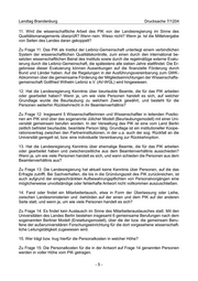 Landtag Brandenburg Drucksache 7/1204 11. Wird die wissenschaftliche Arbeit des PIK von der Landesregierung im Sinne des Qualitätsmanagements überprüft? Wenn nein: Wieso nicht? Wenn ja: Ist die Mittelvergabe von Seiten des Landes daran gekoppelt? Zu Frage 11: Das PIK als Institut der Leibniz-Gemeinschaft unterliegt einem verbindlichen System der wissenschaftlichen Qualitätskontrolle, zum einen durch den international be- setzten wissenschaftlichen Beirat des Instituts sowie durch die regelmäßige externe Evalu- ierung durch die Leibniz-Gemeinschaft, die spätestens alle sieben Jahre stattfindet. Die Er- gebnisse dieser Evaluierung können Auswirkungen auf die finanzielle Förderung durch Bund und Länder haben. Auf die Regelungen in der Ausführungsvereinbarung zum GWK- Abkommen über die gemeinsame Förderung der Mitgliedseinrichtungen der Wissenschafts- gemeinschaft Gottfried Wilhelm Leibniz e.V. (AV-WGL) wird hingewiesen. 12. Hat die Landesregierung Kenntnis über beurlaubte Beamte, die für das PIK arbeiten oder gearbeitet haben? Wenn ja, um wie viele Personen handelt es sich, auf welcher Grundlage wurde die Beurlaubung zu welchem Zweck gewährt, und besteht für die Personen weiterhin Rückkehrrecht in ihr Beamtenverhältnis? Zu Frage 12: Insgesamt 5 Wissenschaftlerinnen und Wissenschaftler in leitenden Positio- nen am PIK sind über das sogenannte Jülicher Modell (Beurlaubungsmodell) mit einer Uni- versität gemeinsam berufen worden. In der Verwaltung des PIK ist eine vom Land Berlin zeitlich befristet beurlaubte, beamtete Person tätig. Grundlage ist ein institutioneller Koope- rationsvertrag zwischen den Partnerinstitutionen, in der u.a. auch der sog. Rückfall an die Universität geregelt ist, bzw. eine individuelle Vereinbarung zur Rückkehroption. 13. Hat die Landesregierung Kenntnis über ehemalige Beamte, die für das PIK arbeiten oder gearbeitet haben und zwischenzeitliche aus dem Beamtenverhältnis ausschieden? Wenn ja, um wie viele Personen handelt es sich, und wann schieden die Personen aus dem Beamtenverhältnis aus? Zu Frage 13: Die Landesregierung hat aktuell keine Kenntnis über Personen, auf die das Erfragte zutrifft. Bei Sachverhalten, die bis in die Gründungszeit des PIK zurückreichen, ist auch aufgrund der eingeschränkten Aufbewahrungspflichten von Personalvorgängen eine möglicherweise unvollständige oder fehlerhafte Antwort nicht vollkommen auszuschließen. 14. Fand oder findet ein Mitarbeitertausch, etwa in Form der Überlassung oder Leihe, zwischen Landesministerien und -behörden auf der einen und dem PIK auf der anderen Seite statt, und wenn ja, um wie viele Personen handelt es sich? Zu Frage 14: Es findet kein Austausch im Sinne des Mitarbeiteraustausches statt. Mit den Universitäten des Landes Berlin bestehen insgesamt 6 gemeinsame Berufungen nach dem sogenannten Berliner Modell (Erstattungsmodell), über die der bzw. die gemeinsam Beru- fene der außeruniversitären Forschungseinrichtung für die dort vorgesehene wissenschaft- liche Leitungstätigkeit zugewiesen wird. 15. Wer trägt bzw. trug hierfür die Personalkosten in welcher Höhe? Zu Frage 15: Die Personalkosten für die in der Antwort auf Frage 14 genannten Personen werden in voller Höhe vom PIK getragen. -5-