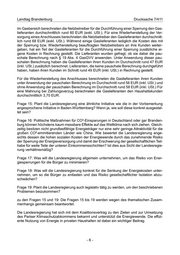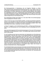 Landtag Brandenburg Drucksache 7/411 Im Gasbereich berechneten die Netzbetreiber für die Durchführung einer Sperrung den Gas- lieferanten durchschnittlich rund 60 EUR (exkl. USt.). Für eine Wiederherstellung der Ver- sorgung eines Anschlusses berechneten die Netzbetreiber den Gaslieferanten durchschnitt- lich rund 68 EUR (exkl. USt.). Während einige Gaslieferanten lediglich die Kosten des mit der Sperrung bzw. Wiederherstellung beauftragten Netzbetreibers an ihre Kunden weiter- geben, hat ein Teil der Gaslieferanten für die Durchführung einer Sperrung zusätzliche ei- gene Kosten in Rechnung gestellt. Die Lieferanten wurden gefragt, ob sie dabei die pau- schale Berechnung nach § 19 Abs. 4 GasGVV anwenden. Unter Anwendung dieser pau- schalen Berechnung haben die Gaslieferanten ihren Kunden im Durchschnitt rund 47 EUR (inkl. USt.) zusätzlich berechnet. Lieferanten, die keine pauschale Berechnung durchgeführt haben, haben ihren Kunden im Schnitt rund 49 EUR (inkl. USt.) in Rechnung gestellt. Für die Wiederherstellung des Anschlusses berechneten die Gaslieferanten ihren Kunden unter Anwendung der pauschalen Berechnung im Durchschnitt rund 56 EUR (inkl. USt.) und ohne Anwendung der pauschalen Berechnung im Durchschnitt rund 58 EUR (inkl. USt.) Für eine Mahnung bei Zahlungsverzug berechneten die Gaslieferanten den Haushaltskunden durchschnittlich 3,70 EUR. Frage 15: Plant die Landesregierung eine ähnliche Initiative wie die in der Vorbemerkung angesprochene Initiative in Baden-Württemberg? Wenn ja, wie soll diese konkret ausgestal- tet sein? Frage 16: Politische Maßnahmen für CO²-Einsparungen in Deutschland oder gar Branden- burg können höchstens kaum messbare Effekte auf das Weltklima nach sich ziehen. Gleich- zeitig besitzen nicht grundlastfähige Energieträger nur eine sehr geringe Attraktivität für die großen CO²-emmitierenden Länder wie China. Wie bewertet die Landesregierung ange- sichts dessen die hohen sozialen Kosten der Energiewende durch das zunehmende Risiko der Sperrung der Energieversorgung und damit der Erschwerung der gesellschaftlichen Teil- habe für weite Teile der unteren Einkommensschichten? Ist dies aus Sicht der Landesregie- rung verhältnismäßig? Frage 17: Was will die Landesregierung allgemein unternehmen, um das Risiko von Ener- giesperrungen für die Bürger zu minimieren? Frage 18: Was will die Landesregierung konkret für die Senkung der Energiekosten unter- nehmen, um so die Bürger zu entlasten und das Risiko gesellschaftlicher Isolation abzu- schwächen? Frage 19: Plant die Landesregierung auch legislativ tätig zu werden, um den beschriebenen Problemen beizukommen? zu den Fragen 15 und 19: Die Fragen 15 bis 19 werden wegen des thematischen Zusam- menhangs gemeinsam beantwortet. Die Landesregierung hat sich mit dem Koalitionsvertrag zu den Zielen und zur Umsetzung des Pariser Klimaschutzabkommens bekannt und unterstützt die Energiewende. Die effizi- ente Nutzung von Energie in privaten Haushalten ist dabei ein wichtiger Beitrag. -6-