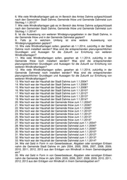 Frage 19: Wie hoch war der Haushalt der Stadt Dahme zum 1.1.2014? Frage 20: Wie hoch war der Haushalt der Gemeinde Ihlow zum 1.1.2004? Frage 21: Wie hoch war der Haushalt der Gemeinde Ihlow zum 1.1.2006? Frage 22: Wie hoch war der Haushalt der Gemeinde Ihlow zum 1.1.2008? Frage 23: Wie hoch war der Haushalt der Gemeinde Ihlow zum 1.1.2010? Frage 24: Wie hoch war der Haushalt der Gemeinde Ihlow zum 1.1.2012? Frage 25: Wie hoch war der Haushalt der Gemeinde Ihlow zum 1.1.2013? Frage 26: Wie hoch war der Haushalt der Gemeinde Ihlow zum 1.1.2014? Frage 27: Wie hoch war der Haushalt der Gemeinde Dahmetal zum 1.1.2004? Frage 28: Wie hoch war der Haushalt der Gemeinde Dahmetal zum 1.1.2006? Frage 29: Wie hoch war der Haushalt der Gemeinde Dahmetal zum 1.1.2008? Frage 30: Wie hoch war der Haushalt der Gemeinde Dahmetal zum 1.1.2010? Frage 31: Wie hoch war der Haushalt der Gemeinde Dahmetal zum 1.1.2012? Frage 32: Wie hoch war der Haushalt der Gemeinde Dahmetal zum 1.1.2013? Frage 33: Wie hoch war der Haushalt der Gemeinde Dahmetal zum 1.1.2014? Frage 34: Wie viel Geld in Form in von Gewerbesteuer, Abgaben oder sonstigen Er- lösen nahm die Gemeinde Stadt Dahme im Jahr 2004, 2005, 2006, 2007, 2008, 2009, 2010, 2011, 2012, 2013 aus den Erträgen von Windkraft in ihrem Gemeinde- gebiet ein? Frage 35: Wie viel Geld in Form in von Gewerbesteuer, Abgaben oder sonstigen Er- lösen nahm die Gemeinde Ihlow im Jahr 2004, 2005, 2006, 2007, 2008, 2009, 2010, 2011, 2012, 2013 aus den Erträgen von Windkraft in ihrem Gemeindegebiet ein? Frage 36: Wie viel Geld in Form in von Gewerbesteuer, Abgaben oder sonstigen Er- lösen nahm die Gemeinde Dahmetal im Jahr 2004, 2005, 2006, 2007, 2008, 2009, 2010, 2011, 2012, 2013 aus den Erträgen von Windkraft in ihrem Gemeindegebiet ein? Zu Fragen 13 bis 36: Der Landesregierung liegen keine Daten von den kreisangehö- rigen Städten und Gemeinden vor. Die zuständige Kommunalaufsichtsbehörde ist die Landrätin des Landkreises Teltow-Fläming. Eine Anforderung der Daten von der Landrätin und die Aufbereitung durch die Landesregierung ist im Rahmen der zur Beantwortung der Kleinen Anfragen zur Verfügung stehenden Frist nicht möglich. Frage 37: Welche Möglichkeiten durch kommunales Baurecht hat eine Gemeinde zur Einflussnahme auf die Errichtung von Windkraftanlagen wenn gegen ihren Willen Windeignungsgebiete auch entgegen dem Flächennutzungsplan der Gemeinde aus- gewiesen werden? Zu Frage 37: Die Gemeinde kann ihre Bedenken und Anregungen im Beteiligungs- verfahren zum Regionalplan bezüglich der Festlegung von Windeignungsgebieten mitteilen. Diese werden im Rahmen der Abwägung mit den anderen Belangen ge- wichtet und abgewogen, dabei kann es aber sein, dass die von der Gemeinde vorge- tragenen Belange gegenüber anderen Belangen zurücktreten müssen. Die nach Ab- wägung und Abschluss des Verfahrens erfolgte Festlegung eines Windeignungsge- bietes ist dann ein Ziel der Raumordnung und ist von der Gemeinde im Rahmen der kommunalen Bauleitplanung zwingend zu beachten. Bauleitpläne, deren Inhalte dem Regionalplan widersprechen, müssen an den Regionalplan angepasst werden. Dies gilt auch für bereits wirksame Pläne.