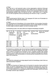 Landtag Brandenburg Drucksache 5/9141 5. Wahlperiode Antwort der Landesregierung auf die Kleine Anfrage 3563 des Abgeordneten Hans-Peter Goetz der FDP-Fraktion Drucksache 5/8995 Datenschutz stärken – Kontenabfrage auf ein Minimum reduzieren – Was unternimmt die Lan- desregierung? Wortlaut der Kleinen Anfrage 3563 vom 30. April 2014: Die staatlichen Behörden greifen immer häufiger auf private Konten zu. Nach Angaben des Bundes- zentralamtes für Steuer sind im vergangenen Jahr mit insgesamt 142.000 Kontenabfragen so viele Ab- fragen erfolgt, wie noch nie zuvor. Diese Zahl habe sich nach Medienberichten zu Folge seit dem Jahr 2012 sogar verdoppelt und die Tendenz im laufenden Jahr sei weiterhin steigend. Seit dem Jahr 2005 können Behörden entsprechende Kontoabfragen durchführen, um Sozialkassen- und Steuerbetrüger ausfindig zu machen. Im Laufe der Jahre wurde der Kreis des zugriffsberechtigten Personenkreises jedoch kontinuierlich ausgeweitet. Mit jeder Ausweitung des Personenkreises wird die Gefahr größer, dass der Datenschutz privater Bürger verwässert. Datenschutz wird demnach ein zu- nehmend wichtigeres Thema des Verbraucherschutzes. Selbst die in der Vergangenheit nicht für Datensparsamkeit bekannt gewesene heutige Bundesdaten- schutzbeauftragte Andrea Voßhoff verfolgt die verstärkte Kontoabfragen kritisch und sieht Handlungs- bedarf: Der Gesetzgeber sei „in der Pflicht, die Befugnis zum Kontenabruf zu überprüfen und auf das unbedingt erforderliche Maß zurückzuführen“ (Spiegel Online, 25. April 2014). Vor diesem Hintergrund frage ich die Landesregierung: 1. Auf wie viele brandenburgische Konten haben in den vergangenen fünf Jahren staatliche Behör- den Zugriff erlangt? (Bitte nach Jahren getrennt aufschlüsseln.) 2. Welche brandenburgischen Behörden haben in den vergangenen fünf Jahren wie oft Kontendaten abgefragt? (Bitte nach Jahren getrennt aufschlüsseln.) 3. Wie bewertet die Landesregierung die stetig steigende Anzahl der Kontenabfragen privater Konten aus datenschutzrechtlicher Perspektive? 4. Sieht die Landesregierung den Datenschutz aktuell als hinreichend berücksichtigt an? Namens der Landesregierung beantwortet der Minister der Finanzen die Kleine Anfrage wie folgt: Frage 1: Auf wie viele brandenburgische Konten haben in den vergangenen fünf Jahren staatliche Behörden Zugriff erlangt? (Bitte nach Jahren getrennt aufschlüsseln.) Datum des Eingangs: 03.06.2014 / Ausgegeben: 10.06.2014