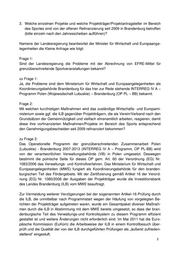 3. Welche einzelnen Projekte und welche Projektträger/Projektantragsteller im Bereich des Sportes sind von der offenen Refinanzierung seit 2009 in Brandenburg betroffen (bitte einzeln nach den Jahresscheiben aufführen)? Namens der Landesregierung beantwortet der Minister für Wirtschaft und Europaange- legenheiten die Kleine Anfrage wie folgt: Frage 1: Sind der Landesregierung die Probleme mit der Abrechnung von EFRE-Mittel für grenzüberschreitende Sportveranstaltungen bekannt? zu Frage 1: Ja, die Probleme sind dem Ministerium für Wirtschaft und Europaangelegenheiten als Koordinierungsbehörde Brandenburg für das hier zur Rede stehende INTERREG IV A – Programm Polen (Wojewodschaft Lubuskie) – Brandenburg (OP PL – BB) bekannt. Frage 2: Mit welchen kurzfristigen Maßnahmen wird das zuständige Wirtschafts- und Europami- nisterium sowie ggf. die ILB gegenüber Projektträgern, die als Verein/Verband nach den Grundsätzen der Gemeinnützigkeit und vielfach ehrenamtlich arbeiten, reagieren, damit diese ihre vorfinanzierten Maßnahmen/Projekte im Bereich des Sports entsprechend den Genehmigungsbescheiden seit 2009 refinanziert bekommen? zu Frage 2: Das Operationelle Programm der grenzüberschreitenden Zusammenarbeit Polen (Lubuskie) - Brandenburg 2007-2013 (INTERREG IV A – Programm, OP PL-BB) wird von der verantwortlichen Verwaltungsbehörde (VB) in Polen umgesetzt. Deswegen bestimmt die polnische Seite für dieses OP gem. Art. 60 der Verordnung (EG) Nr. 1083/2006 das Verwaltungs- und Kontrollverfahren. Das Ministerium für Wirtschaft und Europaangelegenheiten (MWE) fungiert als Koordinierungsbehörde für den branden- burgischen Teil des Fördergebiets. Mit der Zertifizierung gemäß Artikel 16 der Verord- nung (EG) Nr. 1080/2006 der Ausgaben der Projektträger wurde die Investitionsbank des Landes Brandenburg (ILB) vom MWE beauftragt. Zur Vermeidung weiterer Verzögerungen bei der sogenannten Artikel-16-Prüfung durch die ILB, die unmittelbar nach Programmstart wegen der Häufung von vorgelegten Be- richten der Projektträger aufgetreten waren, wurde ein Gesamtpaket diverser Maßnah- men durch die ILB in Abstimmung mit dem MWE bereits umgesetzt, so dass der bran- denburgische Teil des Verwaltungs-und Kontrollsystem zu diesem Programm effizient gestaltet ist und weitere Änderungen nicht erforderlich sind. Im Mai 2011 hat die Euro- päische Kommission (EuKom) die Arbeitsweise der ILB in einem Kontrollbesuch über- prüft und die Qualität der von der ILB durchgeführten Prüfungen als „äußerst zufrieden- stellend“ eingestuft.