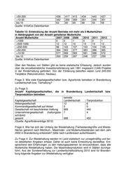 >50-200 438 417 413 434 443 427 >10-50 342 359 369 351 344 351 bis 10 63 60 65 58 55 56 Quelle: InVeKos Datenbanken Tabelle 12: Entwicklung der Anzahl Betriebe mit mehr als 5 Mutterkühen in Abhängigkeit von der Anzahl gehaltener Mutterkühe Anzahl Mutterkühe 2007 2008 2009 2010 2011 2012 >1000 0 0 1 0 0 1 >500-1000 12 12 10 13 14 13 >200-500 98 103 107 103 104 105 >50-200 364 363 377 383 386 365 >10-50 577 569 583 581 588 572 bis 10 260 259 267 248 237 259 Quelle: InVeKos Datenbanken Über den Neubau von Ställen gibt es keine statistische Erfassung. Jedoch wurden über die einzelbetriebliche Investitionsförderung seit 1991 insgesamt 2.646 Projekte in der Rinderhaltung gefördert. Von der Förderung betroffen waren rund 245.000 Tierplätze (Rekonstruktion, Neubau). Frage 3: Wie viele Kapitalgesellschaften bzw. Agrarfonds betreiben in Brandenburg Landwirtschaft bzw. Tierhaltung? Zu Frage 3: Anzahl Kapitalgesellschaften, die in Brandenburg Landwirtschaft bzw. Tierproduktion betreiben betreibt Kapitalgesellschaft Landwirtschaft Tierproduktion Aktiengesellschaft 12 6 Kommanditgesellschaft auf Aktien 0 0 Gesellschaft mit beschränkter Haftung 669 442 Unternehmergesellschaft (haftungsbe- 7 4 schränkt) gesamt 688 452 (Quelle: Agrarförderanträge 2012) Frage 4: Wie hat sich der Umfang der Weidehaltung (Tierbestandsgröße und Weide- fläche) getrennt nach Milchkuh-, Mastrinder- und Mutterkuhbeständen seit dem Jahr 2002 in Brandenburg entwickelt? (bitte nach Landkreisen aufschlüsseln) Zu Frage 4: Zur Weidehaltung werden im Land statistisch nur unregelmäßig und kei- ne detaillierten Angaben erfasst. Daher ist auch keine Entwicklung darstellbar. Ent- sprechend den Erfahrungen zu den Haltungssystemen ist einzuschätzen, dass alle Mutterkühe Weidehaltung haben. Die Mastrinderproduktion wird in Ställen durchge- führt. Aus der Sondererhebung zur Landwirtschaftszählung 2010 sind für Branden- burg folgende Angaben zur Weidehaltung verfügbar: