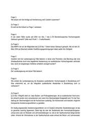 Frage 3. Wie setzen sich die Anträge auf Anerkennung nach Ländern zusammen? Zu Frage 3: Es wird auf die Antwort zu Frage 1 verwiesen. Frage 4: In wie vielen Fällen wurde seit 2004 von Abs. 7 des § 28 Brandenburgisches Hochschulgesetz Gebrauch gemacht? (bitte nach Punkt 1 – 3 aufschlüsseln) Zu Frage 4: Das MWFK hat von der Möglichkeit des § 28 Abs. 7 bisher keinen Gebrauch gemacht. Alle vor dem 24. März 2004 per Bescheid erteilten Gradführungsgenehmigungen haben weiter ihre Gültigkeit. Frage 5: Inwiefern sind der Landesregierung Fälle bekannt, in denen eine Promotion, eine Berufung oder eine Arbeitsaufnahme durch eine abgelehnte Anerkennung von ausländischen Hochschulgraden verhindert bzw. durch ein langwieriges Verfahren erheblich verzögert wurden? Zu Frage 5: Der Landesregierung sind keine Fälle bekannt. Frage 6: Wie schätzt die Landesregierung die Akzeptanz ausländischer Hochschulgrade in Brandenburg ein? Was unternimmt sie, um die Integration ausländischer Akademiker in Brandenburg noch zu verbessern? Zu Frage 6: § 22 Abs. 5 BbgHG sieht vor, dass Studien- und Prüfungsleistungen, die an ausländischen Hoch-schu- len erbracht worden sind, anzuerkennen sind, wenn ihre Gleichwertigkeit festgestellt wird. Für die Fest- stellung der Gleichwertigkeit sind die Hochschulen zuständig. Die Hochschulen sind bestrebt, möglichst transparente Anerkennungsverfahren zu gestalten. Ein häufig angewandtes Anerkennungsverfahren von im Ausland erbrachten Studienleistungen ist das so genannte Learning Agreement. Dabei legt die oder der Studierende dem Hochschulprüfungsaus- schuss eine Liste von Modulen und Lehrveranstaltungen vor, die an der Gasthochschule belegt werden sollen. Anhand der Informationen zu der Gasthochschule sowie anhand der Modul- und Lehrveranstal-