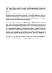 tungsbeschreibungen wird entschieden, ob diese bei erfolgreicher Absolvierung anerkannt werden. Nach Rückkehr erfolgt die Bestätigung des von der Gasthochschule ausgestellten Transcripts of Re- cords durch den Prüfungsausschuss und damit die Anerkennung der im Ausland erbachten Studien- leistungen. Des Weiteren schließen die Hochschulen zur Anerkennung von Studienleistungen und Studienab- schlüssen Abkommen mit ausländischen Hochschulen, in denen detailliert geregelt wird, welche Studi- enleistungen beziehungsweise Studienabschlüsse in welchem Umfang von den Vertragspartnerhoch- schulen anerkannt werden. Zudem werden im Ausland erbrachte Studienleistungen und Studienab- schlüsse im Rahmen von Einzelfallentscheidungen anerkannt. Im Zusammenhang mit der Anerkennung von Studienleistungen und Studienabschlüssen ist auch das unter der Schirmherrschaft des Europarats und der UNESCO erarbeitete „Übereinkommen über die Anerkennung von Qualifikationen im Hochschulbereich in der europäischen Region“ (Lissabon-Konven- tion) zu nennen, das am 11. April 1997 beschlossen wurde und am 1. Februar 1999 in Kraft getreten ist. In der Bundesrepublik Deutschland ist die Lissabon-Konvention am 1. Oktober 2007 in Kraft getre- ten. In dem Abkommen verpflichten sich die Vertragsstaaten, transparente Systeme zur gegenseitigen Anerkennung von Qualifikationen im Hochschulbereich in der europäischen Region zu schaffen. Ein Verfahren, das die Transparenz im Sinne der Lissabon-Konvention bereits deutlich verbessert hat, ist das Europäischen Kreditpunktesystem ECTS (European Credit Transfer and Accumulation System). Im Übrigen wird auf die Antwort der Landesregierung zu den Fragen 56 bis 60 der Großen Anfrage Nr. 44 „Zur Integrationspolitik des Landes Brandenburg“ (Landtagsdrucksache 4/7466) verwiesen.