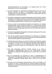 Landtag Brandenburg Drucksache 5/9089 5. Wahlperiode Antwort der Landesregierung auf die Kleine Anfrage 3524 der Abgeordneten Monika Schulz-Höpfner und Björn Lakenmacher der CDU-Fraktion Drucksache 5/8878 Polizeistrukturreform - Polizeirevier Spremberg Wortlaut der Kleinen Anfrage 3524 vom 10.04.2014 : Zur Polizeiinspektion Cottbus/Spree-Neiße gehört der Revierbereich Spremberg. Der massive Stellenabbau bei der Schutz- und Kriminalpolizei des Landes Brandenburg hat erhebliche negative Auswirkungen auf das Sicherheitsgefühl der Bürger, auf die Qualität der Polizeiarbeit und auf die Erreichbarkeit sowie Präsenz der Polizei. Wir fragen die Landesregierung: 1.) Wie viele Einwohner leben im Zuständigkeitsbereich des Inspektionsbereiches Cottbus/Spree- Neiße gesamt und wie viele im Zuständigkeitsbereich des Polizeireviers Spremberg und welche Gesamtfläche umfasst der Inspektionsbereich Cottbus/Spree-Neiße und der Revierbereich Spremberg (bitte Angabe der Einwohnerzahl jeweils insgesamt und nach den Altersgruppen bis 18 Jahre, 18 bis 25 Jahre, 25 bis 30 Jahre, 30 bis 40 Jahre, 40 bis 50 Jahre, 50 bis 60 Jahre und über 60 Jahre)? 2.) Wie viele Polizeibedienstete sind gegenwärtig im Inspektionsbereich Cottbus/Spree-Neiße gesamt und wie viele davon im Polizeirevier Spremberg tätig und wie hoch ist jeweils ihr Altersdurchschnitt? (bitte jeweils für Inspektion und Revier nach Laufbahngruppen und Organisationseinheiten; Polizeibedienstete im Überhang sind auch auszuweisen) 3.) Wie viele Bedienstete des Inspektionsbereiches Cottbus/Spree-Neiße gesamt und wie viele des Polizeireviers Spremberg sind gegenwärtig jeweils bis 30, bis 40, bis 50, bis 60 und über 60 Jahre alt? Wie wird sich diese Altersstruktur gemäß Personalentwicklungsplanung im Jahr 2020 in der Inspektion gesamt und im Revier Spremberg darstellen? 4.) Welche Änderungen in der Personalstärke sind im Zuge der weiteren Umsetzung der Polizeistrukturreform im Inspektionsbereich Cottbus/Spree-Neiße gesamt und im Revierbereich Spremberg geplant? (bitte hier jeweils Personalentwicklungsplanung detailliert in den jeweiligen Laufbahngruppen, in den Organisationseinheiten, in den Führungspositionen sowie die Datum des Eingangs: 19.05.2014 / Ausgegeben: 26.05.2014