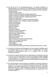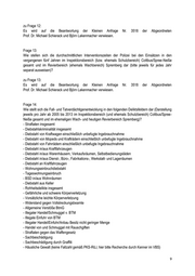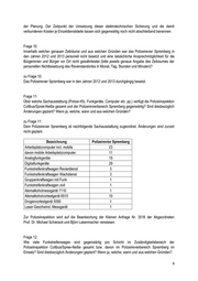 Frage 15: Wie stellt sich die Entwicklung der Aufklärungsquote in den oben genannten Deliktsfeldern jeweils dar (Darstellung jeweils pro Jahr ab 2005 bis 2013 im Inspektionsbereich (und ehemals Schutzbereich) Cottbus/Spree-Neiße gesamt und im ehemaligen Wach- und heutigen Revierbereich Spremberg)? zu den Fragen 14 und 15: Hinsichtlich der Polizeiinspektion wird auf die Beantwortung der Kleinen Anfrage Nr. 3518 der Abgeordneten Prof. Dr. Michael Schierack und Björn Lakenmacher verwiesen. Zur Beantwortung dieser Fragen für das Polizeirevier Spremberg für das Jahr 2012 sowie für die Deliktsfelder Illegale Einfuhr von BTM, Illegaler Handel/Einfuhr/Anbau Besitz in nicht geringer Menge und Sachbeschädigung durch Graffiti für die Jahre 2005 bis 2011 wird auf die Anlagen 1 und 2 verwiesen. Die Anzahl der Tatverdächtigen für 2013 ist in der Anlage 1 abgebildet. Bezüglich der Fallzahlen und Aufklärungsquoten für 2013 wird auf Frage 16 verwiesen. Für die Jahre vor 2012 wird für die übrigen Delikte auf die Beantwortung der Kleinen Anfrage Nr. 2046 der Abgeordneten Monika Schulz-Höpfner und Björn Lakenmacher verwiesen. Frage 16: Wie stellt sich die registrierte Fallentwicklung samt Aufklärungsquoten im Revierbereich Spremberg im Jahr 2013 und in den ersten Monaten des Jahres 2014 dar (Angabe der Straftaten insgesamt und aller Deliktsfelder nach PKS-Richtlinie sowie Kriminalitätshäufigkeitszahl für die Jahre 2013 und die ersten Monate in 2014 insgesamt und zudem in jeweils monatlicher Aufschlüsselung. Bitte auch elektronisch in Excel zuliefern)? zu Frage 16: Die in dem Jahr 2013 und in den ersten Monaten des Jahres 2014 im Revierbereich Spremberg registrierten Fallentwicklungen und Aufklärungsquoten sind den beigefügten Anlagen 3 und 4 zu entnehmen. Die Anlage 4 enthält keine Kriminalitätshäufigkeitszahlen, da - gemäß den bundeseinheitlichen Richtlinien zur Führung der Polizeiliche Kriminalstatistik (PKS) - diese Kriminalitätshäufigkeitszahlen nur auf Grundlage von PKS-Jahreszahlen berechnet werden. Frage 17: Nach welchen Regularien wurde die Polizeiliche Kriminalstatistik im Revierbereich Spremberg in den Jahren 2012, 2013 und in den ersten Monaten des Jahres 2014 genau erfasst (bitte genaue Darlegung, ob die Registratur allein gemäß der PKS-Richtlinie Bund erfolgt ist und genaue Aufführung der Zeiträume, in welchen die Registratur und Erfassung der PKS unter Geltung und in Anwendung von ergänzenden Dienst- und Handlungsanweisungen bzw. Regelungen der Polizei Brandenburg erfolgt ist)? zu Frage 17: Es wird auf die Beantwortung der Kleinen Anfrage Nr. 3482 des Abgeordneten Björn Lakenmacher verwiesen.