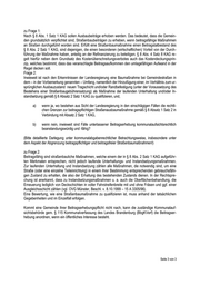 zu Frage 1: Nach § 8 Abs. 1 Satz 1 KAG sollen Ausbaubeiträge erhoben werden. Das bedeutet, dass die Gemein- den grundsätzlich verpflichtet sind, Straßenbaubeiträgen zu erheben, wenn beitragsfähige Maßnahmen an Straßen durchgeführt worden sind. Erfüllt eine Straßenbaumaßnahme einen Beitragstatbestand des § 8 Abs. 2 Satz 1 KAG, sind diejenigen, die einen besonderen (wirtschaftlichen) Vorteil von der Durch- führung der Maßnahme haben, anteilig an der Refinanzierung zu beteiligen. § 8 Abs. 4 Satz 8 KAG re- gelt hierfür neben dem Grundsatz des Kostenüberschreitungsverbotes auch das Kostendeckungsprin- zip, welches bestimmt, dass das veranschlagte Beitragsaufkommen den umlagefähigen Aufwand in der Regel decken soll. Frage 2: Inwieweit ist nach den Erkenntnissen der Landesregierung eine Baumaßnahme bei Gemeindestraßen in dem – in der Vorbemerkung genannten – Umfang, namentlich der Hinzufügung einer, im Verhältnis zum ur- sprünglichen Ausbauzustand neuen Tragschicht und/oder Randbefestigung (unter der Voraussetzung des Bestehens einer Straßenbaugebührensatzung) als Maßnahme der laufenden Unterhaltung und/oder In- standsetzung gemäß § 8 Absatz 2 Satz 1 KAG zu qualifizieren, und, a) wenn ja, wo bestehen aus Sicht der Landesregierung in den einschlägigen Fällen die rechtli- chen Grenzen zur beitragspflichtigen Straßenausbaumaßnahme gemäß § 8 Absatz 1 Satz 2 in Verbindung mit Absatz 2 Satz 1 KAG, b) wenn nein, inwieweit sind Fälle unterlassener Beitragserhebung kommunalaufsichtsrechtlich beanstandungswürdig und -fähig? (Bitte detaillierte Darlegung unter kommunalabgabenrechtlicher Betrachtungsweise, insbesondere unter dem Aspekt der Abgrenzung beitragspflichtiger und beitragsfreier Straßenbaumaßnahmen!) zu Frage 2: Beitragsfähig sind straßenbauliche Maßnahmen, welche einem der in § 8 Abs. 2 Satz 1 KAG aufgeführ- ten Merkmalen entsprechen, nicht jedoch laufende Unterhaltungs- und Instandsetzungsmaßnahmen. Zur laufenden Unterhaltung und Instandsetzung zählen alle Maßnahmen, die notwendig sind, um eine Straße (oder eine einzelne Teileinrichtung) in einem ihrer Bestimmung entsprechenden gebrauchsfähi- gen Zustand zu erhalten, die also der Erhaltung des bestehenden Zustands dienen. In der Rechtspre- chung ist anerkannt, dass zu Instandsetzungsmaßnahmen u. a. auch die Oberflächenbehandlung, die Erneuerung lediglich von Deckschichten in voller Fahrstreifenbreite mit und ohne Fräsen und ggf. einer Ausgleichsschicht zählen (vgl. OVG Münster, Beschl. v. 8.10.1999 – 15 A 3305/96). Eine Bewertung, wie eine Straßenbaumaßnahme zu qualifizieren ist, muss anhand der tatsächlichen Gegebenheiten und im Einzelfall erfolgen. Kommt eine Gemeinde ihrer Beitragserhebungspflicht nicht nach, kann die zuständige Kommunalauf- sichtsbehörde gem. § 115 Kommunalverfassung des Landes Brandenburg (BbgKVerf) die Beitragser- hebung anordnen, wenn ein öffentliches Interesse besteht. Seite 3 von 3