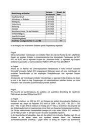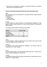 5. Wie bewertet die Landesregierung die qualitative und quantitative Entwicklung der registrierten PMK-links seit dem Jahr 2009 bis Ende 2013? Namens der Landesregierung beantwortet der Minister des Innern die Kleine Anfrage wie folgt: Frage 1: Wie viele Straftaten wurden im zweiten Halbjahr 2013 in dem Bereich „PMK-links“ insgesamt registriert? Bitte aufführen nach: Gewalttaten sonstige Straftaten terroristische Straftaten zu Frage 1: Im zweiten Halbjahr 2013 wurden im Rahmen des Kriminalpolizeilichen Meldedienstes in Fällen Politisch motivierter Kriminalität (KPMD-PMK) 119 politisch motivierte Straftaten im Phänomenbereich PMK-links registriert. Die nachfolgende Tabelle enthält eine Aufstellung gemäß der Anfrage. Kategorie Anzahl der Fälle Gewaltdelikte 8 Sonstige Straftaten 111 Terroristische Straftaten 0 Gesamt 119 Frage 2: Um welche Gewalttaten - tabellarisch aufgeschlüsselt nach Ort, Landkreis, Datum, Anzahl der Opfer und der Täter, Straftat nach StGB - handelte es sich? zu Frage 2: Eine Auflistung der acht politisch linksmotivierten Gewaltdelikte zu den einzelnen Punkten der Fragestellung ist in der Anlage 1 abgebildet Frage 3: Um welche sonstigen Straftaten - ebenfalls tabellarisch aufgeschlüsselt nach Ort, Landkreis, Datum, Straftat nach StGB, Geschädigtenkreis - handelt es sich? zu Frage 3: Die nachfolgende Auflistung enthält eine deliktische Aufschlüsselung der in Beantwortung der Frage 1 aufgeführten 111 „sonstigen Straftaten“.