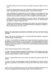 3.In welcher Weise und von wem wurden und werden die deutschen Opfer der Tat be- treut? 4.Zieht die Landesregierung durch die vorbenannte Gewalttat Konsequenzen für die weitere Ausgestaltung des Handlungskonzeptes „Tolerantes Brandenburg“? 5.Wie beabsichtigt die Landesregierung mit den Ängsten eines Großteils der ange- stammten deutschen Bevölkerung vor ähnlichen Anschlägen ausländischer bzw. aus- landsstämmiger Jugendlicher umzugehen? Soll hier lediglich beschwichtigt werden? 6.Warum erachtet es die Landesregierung für sinnvoll, dass nur wenige Wochen nach der Gewalttat an der Johannes-R.-Becher-Oberschule in Erkner ein „zentrales Einbür- gerungsfest“ in Potsdam durchgeführt wird? 7.Besteht nach Auffassung der Landesregierung die Gefahr, dass weitere Einbürgerun- gen die Quote der von Deutschen mit Migrationshintergrund begangenen Straftaten er- höhen könnten? Wenn nein, warum nicht? Namens der Landesregierung beantwortet der Minister des Innern die Kleine Anfrage wie folgt: Frage 1: Wie weit ist die Aufklärung der von türkisch-stämmigen Migranten begangenen Gewalttat bislang vorangekommen? zu Frage 1: Die polizeilichen Ermittlungen zum in Rede stehenden Sachverhalt wurden ab- geschlossen und das Verfahren am 30. Mai 2008 an die Staatsanwaltschaft Frankfurt (Oder) übersandt. Da es sich bei den Beschuldigten um Jugendliche handelt, deren Wohn- ort Berlin ist, wurde das Verfahren von dort an die insoweit zuständige Staatsanwaltschaft in Berlin abgegeben. Frage 2: Welche Tatmotive konnten ermittelt werden? zu Frage 2: Nach den bisherigen polizeilichen Ermittlungen ist der Hintergrund des Tatge- schehens in jugendtypischem, pubertärem Verhalten zu sehen. Die endgültige Bewertung bleibt dem weiteren Verfahren in Berlin vorbehalten. Frage 3: In welcher Weise und von wem wurden und werden die deutschen Opfer der Tat betreut? zu Frage 3: Die Eltern der Geschädigten wurden auf eine Betreuung im Rahmen des Op- ferschutzes hingewiesen. Die Betroffenen und deren Eltern hielten dies nicht für erforder- lich. Frage 4: Zieht die Landesregierung durch die vorbenannte Gewalttat Konsequenzen für die weitere Ausgestaltung des Handlungskonzeptes „Tolerantes Brandenburg“?