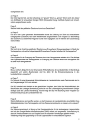 entweder selbst Strom aus erneuerbaren Energien erzeugt oder diesen, was der Regelfall ist, von einem Ökostromerzeuger aufkauft und ihn an Hand von Netznutzungsvereinbarungen durchleitet. Ausschlaggebend war hierbei nicht der physikalische Stromfluss, sondern die vertragliche Lieferung von Strom aus erneuerbaren Energien. Die vertragliche Lieferung ist nur gegeben, wenn eine ununterbrochene vertragliche Lieferkette für den Ökostrom nach den vertraglichen Vorgaben zur Qualität vom Erzeuger bis zum Auftraggeber besteht. Die Herkunft des gelieferten Stroms muss auf eindeutig beschriebene und identifizierbare Quellen zu- rückführbar sein. Der Herkunftsnachweis bzw. die Zertifizierung muss durch eine staatlich anerkannte Technische Überwachungsorganisation (TÜO) oder einem nach Eco-Management and Audit Scheme (EMAS) akkreditierten Umweltgutachter erfolgen. Alternativ kann in gemeinsamer Abstimmung der Par- teien ein gleichermaßen geeigneter Gutachter ausgewählt werden, solange die Überprüfung der vorge- legten Dokumente gemäß der deutschen Herkunftsnachweisverordnung erfolgt. Den Nachweis über die Erfüllung der Anforderungen an den gelieferten Ökostrom hat der Stromlieferant auf eigene Kosten für jedes Kalenderjahr bis zum 30. Juni des auf das Kalenderjahr folgenden Jahres unaufgefordert zu erbringen. Dieser Nachweis muss inhaltlich dem als Anlage des Stromliefervertrags beiliegenden Muster-Zertifizierungsbericht entsprechen. Frage 3: Welche klimapolitischen Ziele verfolgt die Landesregierung mit der Ökostromversorgung der Landesbe- hörden? zu Frage 3: Ziel der Landesregierung ist es, mit der Ökostromversorgung der Landesbehörden eine Vorbildwirkung zu erzeugen und zu verdeutlichen, dass die Landesregierung eigene Beiträge leistet, die von ihr defi- nierten klimapolitischen Ziele zu erreichen. Eine Versorgung der Landesbehörden mit Ökostrom leistet damit einen wesentlichen Beitrag zur Umsetzung der Energiestrategie 2030 (2.A: Projekt I Vorbildfunk- tion der öffentlichen Hand: Erstellen eines Aktionsplanes zur energetischen Optimierung der öffentli- chen Liegenschaften im Land Brandenburg). Wesentliches Ziel ist die Reduzierung des CO2 – Ausstoßes. Die bedeutendsten Umweltauswirkungen der Stromerzeugung in Bezug auf CO 2-Emissionen erfolgen während der Produktionsphase. Ein Großteil der Elektrizität wird durch die Verbrennung von Kohle, Öl und Gas in Kraftwerken erzeugt. Die verstärkte Nutzung von Strom aus erneuerbaren Energiequellen hat großes Potenzial, den Ausstoß von CO2- Emissionen zu reduzieren. Erneuerbare Energien im Sinne der Ökostromausschreibung des Brandenburgischen Landesbetrieb für Liegenschaften und Bauen (BLB) sind insoweit ausschließlich Wasserkraft einschließlich der Wellen-, Gezeiten-, Salzgradienten- und Strömungsenergie, Windenergie, solare Strahlungsenergie, Geother- mie, Energie aus Biomasse gemäß der Verordnung über die Erzeugung von Strom aus Biomasse ein- schließlich Biogas, Deponiegas und Klärgas sowie aus dem biologisch abbaubaren Anteil von Abfällen aus Haushalten und Industrie. Bei der Ökostromausschreibung lag der Fokus zunächst allein auf der Verringerung von CO 2- Emissionen. In einer zukünftigen Neuausschreibung soll auch die Förderung des Ausbaus von zusätzlicher Ökostromkapazität Berücksichtigung finden. Ziel ist es insoweit, im Rahmen der nächsten Ausschrei- bung als Kriterium für den Ökostrom eine Neuanlagenquote festzulegen und somit den Ausbau zusätz- licher Ökostromkapazität zu fördern. Frage 4: Wie hoch ist der Anteil des gelieferten Stroms, dessen Öko-Qualität mit RECS-Zertifikaten