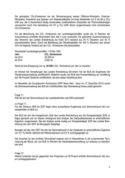 Die geringsten CO2-Emissionen bei der Stromerzeugung weisen Offshore-Windparks, Onshore- Windparks, Solarstrom aus Spanien und Wasserkraftwerke mit einer Bandbreite von 9 bis 68 g CO 2/ kWh aus; die in Deutschland häufig verwendeten multikristallinen Solarzellen der Photovoltaikanlagen verursachen durch ihre Herstellung mit 101 g CO2 /kWh Strom vergleichsweise hohe anrechenbare CO2-Emissionen. Für die Berechnung der CO2 -Emissionen der Landesliegenschaften wurde der im Rahmen der Ausschreibung ermittelte Strombedarf über alle 4 Lose verwendet. Die geforderte Zusammensetzung des Strommix des Landes Brandenburg bis Ende 2013 bestand aus 50 % Ökostrom und 50 % konventionellem Strom. Durch die Belieferung der Abnahmestellen mit 100 % Ökostrom seit Januar 2014 ist folgende Tendenz bei den CO2 –Emissionen (t/a) festzustellen: Strombedarf Landesliegenschaften: 116 Mio. kWh Jahr CO2 –Emissionen bis 2013 36.308 t/a ab 2014 5.800 t/a Damit ist eine Einsparung von ca. 30.508 t CO2 –Emissionen pro Jahr zu erwarten. Im Intranet der Verwaltungen des Landes Brandenburg (bb-intern) hat der BLB die Ergebnisse der Ökostromausschreibung veröffentlicht. Weiterhin wurde vom BLB eine Pressemitteilung zur Umstellung auf 100 Prozent Ökostrom veröffentlicht, die eine starke Verbreitung fand. Im Newsletter der Europäischen Kommission (GPP News Alert - Issue no. 37 Dezember 2013) wurde die Stromausschreibung des BLB als Vorbildfunktion über Brandenburg hinaus publik gemacht. Frage 11: Wie hat sich der Stromverbrauch der Landesbehörden seit 2005 entwickelt? zu Frage 11: Für den Zeitraum 2005 bis 2007 liegen keine auswertbaren Ergebnisse zum Stromverbrauch der Lan- desbehörden im BLB vor. Der BLB hat sich die energetischen Ziele des Landes Brandenburg aus der Energiestrategie 2030 zu Eigen gemacht und vor diesem Hintergrund eine Analyse des Gebäudebestandes im wirtschaftlichen Eigentum vorgenommen. Bei der Analyse wurde analog zur Energiestrategie 2030 des Landes Bran- denburg das Jahr 2007 als Bezugsjahr festgelegt. Bezogen auf das Jahr 2007 hat sich der Stromverbrauch in den Gebäuden im wirtschaftlichen Eigentum um 15,7 % erhöht, während der Wärmeverbrauch um 6,5 % zurückgegangen ist. Die Ursachen für den erhöhten Strombedarf ergeben sich im Wesentlichen in der zunehmenden Tech- nisierung der Büros, die vom BLB im Rahmen der Gebäudebewirtschaftung nur teilweise zu beeinflus- sen sind. Frage 12: Welche Ursachen hat der gegenüber den Prognosen um 50 Prozent erhöhte Stromverbrauch des neu- en Landtagsgebäudes?