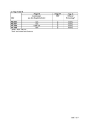 Zu Frage 16 bis 18: Frage 16 Frage 17 Frage 18 2 Zuweisungen HSK Höhe der Jahr 1 aus dem Ausgleichsfonds - Kreisumlage 2 RE 2006 nein ja 44,00% RE 2007 nein ja 44,40% HH 2008 9.839.125 ja 44,00% HH 2009 nein ja 44,00% 1 gemäß § 16 Abs. 3 BB FAG 2 Quelle: beschlossene Haushaltssatzung Seite 7 von 7