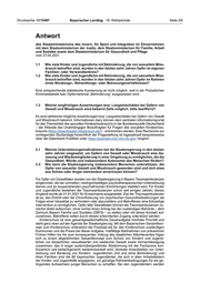18. Wahlperiode 11.06.2021 Drucksache 18/15487 Schriftliche Anfrage der Abgeordneten Kerstin Celina, Johannes Becher, Toni Schuberl BÜNDNIS 90/DIE GRÜNEN vom 08.03.2021 Sexueller Missbrauch von Kindern und Jugendlichen mit Behinderung III Wir fragen die Staatsregierung: 1.1 Wie viele Kinder und Jugendliche mit Behinderung, die von sexuellem Miss- brauch betroffen sind, wurden in den letzten zehn Jahren Opfer im eigenen Familien- oder Verwandtenkreis? 2 1.2 Wie viele Kinder und Jugendliche mit Behinderung, die von sexuellem Miss- brauch betroffen sind, wurden in den letzten zehn Jahren Opfer im Rahmen eines Beratungs‑, Behandlungs- oder Betreuungsverhältnisses? 2 1.3 Welche langfristigen Auswirkungen bzw. Langzeitschäden bei Opfern von Gewalt und Missbrauch sind bekannt (falls möglich, bitte beziffern)? 2 2.1 Welche Unterstützungsmaßnahmen hat die Staatsregierung in den letzten zehn Jahren umgesetzt, um Opfern von Gewalt oder Missbrauch eine Ge- nesung und Wiedereingliederung in einer Umgebung zu ermöglichen, die die Gesundheit, Würde und insbesondere Autonomie des Menschen fördert? 2 2.2 Wie kann die Staatsregierung insbesondere Menschen unterstützen, die Opfer von sexueller Gewalt und Missbrauch geworden sind und sich etwa aus Scham oder Angst niemandem anvertrauen können? 2 3.1 Wie hoch ist die Aufklärungsquote bei Straftaten im Zusammenhang mit sexuellem Missbrauch gegen Kinder und Jugendliche mit Behinderung? 3 3.2 Wie hoch ist die vermutete Dunkelziffer (bitte Schätzungsgrundlage be- nennen)? 3 3.3 Was wird getan, um das Dunkelfeld zu beleuchten? 3 4.1 Welche bayerischen Programme gibt es, um die Vermeidung von Sexual- straftaten gegen Kinder und Jugendliche bzw. die Resozialisierung von Täterinnen und Tätern zu erreichen? 4 4.2 Welche Teilnahmevoraussetzungen bestehen bei den zu Frage 4.1 ge- nannten Programmen? 4 4.3 Wie hoch ist der Anteil derer, die nach Eintreten in ein zu Frage 4.1 ge- nanntes Programm erneut Sexualstraftaten an Kindern und Jugendlichen begehen? 5 5.1 Inwieweit unterstützt der Freistaat Bayern Selbsthilfegruppen für Opfer von sexuellem Missbrauch, insbesondere von Kindern und Jugendliche mit Be- hinderung und deren Eltern? 6 5.2 Inwieweit können sich Betroffene auf eigenen Wunsch – ggf. anonymisiert – selbst als Expertinnen und Experten in eigener Sache einbringen, z. B. bei Fortbildungsveranstaltungen der Justizbehörden, in Gremien etc.? 6 Hinweis des Landtagsamts: Zitate werden weder inhaltlich noch formal überprüft. Die korrekte Zitierweise liegt in der Verantwortung der Fragestellerin bzw. des Fragestellers sowie der Staatsregierung. Drucksachen, Plenarprotokolle sowie die Tagesordnungen der Vollversammlung und der Ausschüsse sind im Internet unter www.bayern.landtag.de/parlament/dokumente/ abrufbar. Die aktuelle Sitzungsübersicht steht unter www.bayern.landtag.de/aktuelles/sitzungen/ zur Verfügung.