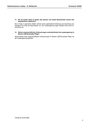 Niedersächsischer Landtag – 18. Wahlperiode Drucksache 18/6263 14. Wie oft wurden diese im letzten Jahr genutzt, und welche Beschwerden wurden dort hauptsächlich vorgebracht? Die in Frage 14 genannten Stellen nehmen keine systematische Erfassung und Auswertung von Häufigkeit und Inhalt der Beschwerden vor. Der Landesregierung liegen deshalb hierzu keine Er- kenntnisse vor. 15. Welche wissenschaftlichen Untersuchungen unterstützt/fördert die Landesregierung im Bereich LSBTIQ-sensible Pflege? Aktuell werden keine wissenschaftlichen Untersuchungen im Bereich LSBTIQ-sensible Pflege von der Landesregierung gefördert. (Verteilt am 23.04.2020) 5