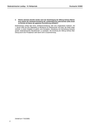 Niedersächsischer Landtag – 18. Wahlperiode Drucksache 18/5802 Kleine Anfrage zur schriftlichen Beantwortung gemäß § 46 Abs. 1 GO LT mit Antwort der Landesregierung Anfrage der Abgeordneten Eva Viehoff und Stefan Wenzel (GRÜNE) Antwort des Niedersächsischen Ministeriums für Wissenschaft und Kultur namens der Landesregie- rung Schatzkammer und Stiftungsgründung - Wie geht es weiter mit der Marienburg? Anfrage der Abgeordneten Eva Viehoff und Stefan Wenzel (GRÜNE), eingegangen am 08.01.2020 - Drs. 18/5549 an die Staatskanzlei übersandt am 13.01.2020 Antwort des Niedersächsischen Ministeriums für Wissenschaft und Kultur namens der Landesregie- rung vom 12.02.2020 Vorbemerkung der Abgeordneten Am 10.12.2019 berichtete die Braunschweiger Zeitung, dass in der Marienburg eine neue Schatz- kammer für das Silbermobiliar gebaut werde soll. Während dieser Zeit komme das Silbermobiliar der Marienburg im Braunschweiger Herzog Anton Ulrich-Museum unter, werde dort restauriert und ab der zweiten Jahreshälfte 2020 in einer neuen Sonderausstellung ausgestellt. Am 18.12.2019 be- richtete die HAZ darüber hinaus, dass die neue Stiftung Schloss Marienburg im Januar ihre Arbeit aufnehmen will, da das zuständige Hildesheimer Regionalamt die von Ernst August Erbprinz von Hannover beantragte Gründung der Stiftung genehmigt habe. 1. Welche Kosten entstehen für die neue Schatzkammer in der Marienburg, und wer über- nimmt diese? Der Eigentümer des Silbermobiliars König Georgs II. hat dieses dem Land als Dauerleihgabe über- lassen, damit es langfristig als Teil der Ausstattung von Schloss Marienburg für die Öffentlichkeit zugänglich bleiben kann. Um Kunstwerke von der Bedeutung der Silbermöbel in öffentlicher Ver- antwortung präsentieren zu können, müssen konservatorisch und sicherheitstechnisch geeignete Ausstellungsräume zur Verfügung stehen. Auf Schloss Marienburg ist das derzeit nicht der Fall. Deshalb werden die Silbermöbel zunächst in Braunschweig gezeigt, bis die notwendigen Voraus- setzungen auf Schloss Marienburg geschaffen sein werden. Das soll im Zuge der Zuwendungs- baumaßnahme zur Sanierung dieses Kulturdenkmals von anerkannt nationaler Bedeutung gesche- hen. Diese Maßnahme beginnt nach den Vorgaben der Richtlinien für den Zuwendungsbau des Bundes mit einer Formlosen Anfrage an die Bundesbeauftragte für Kultur und Medien (BKM). Nachdem die Stiftung Schloss Marienburg am 20. Januar 2020 das Eigentum am Schloss Marien- burg erworben hat, hat sie diese Formlose Anfrage am 30. Januar 2020 an die Behörde der BKM gerichtet. Spezifizierte Kostenschätzungen, welchen Anteil die Herstellung einzelner Räume an den vom Deutschen Bundestag und vom Niedersächsischen Landtag in die Haushalte eingestellten Sanierungsmitteln haben wird, sind zum jetzigen Zeitpunkt daher nicht möglich. 2. Wie hoch sind die Kosten der Restaurierung des Silberrmobiliars durch das Braun- schweiger Herzog Anton Ulrich-Museum, und wer trägt diese Kosten? Es besteht nicht die Absicht, die Silbermöbel seitens des Herzog Anton Ulrich-Museums zu restau- rieren. Gleichwohl ist eine Präsentation der Silbermöbel durch das Landesmuseum geplant. Dafür sind in geringem Umfang Maßnahmen der Sicherung und Reinigung erforderlich, die aus dem lau- fenden Haushalt des MWK in Höhe von 8 000 Euro finanziert werden. 1