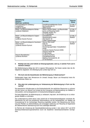 Niedersächsischer Landtag – 18. Wahlperiode Drucksache 18/6058 Bezeichnung/ Deponie- Standort/ Betreiber klasse Stadt bzw. Landkreis Mineralstoffdeponie Sülteberg / KreisWirtschaftsBetriebe Goslar § 3 Abs. 2 Langelsheim / Bornhardtstraße 13 AbfAblV Landkreis Goslar 38644 Goslar Boden- und Bauschuttdeponie Söhlde / Marion Harstick Boden- und Bauschuttde- § 3 Abs. 2 Landkreis Hildesheim ponie und Recycling GmbH AbfAblV Ahstedter Straße 19 a 31174 Schellerten Boden- und Bauschuttdeponie Coppen- Umweltdienste § 3 Abs. 2 brügge / Weserbergland GmbH AbfAblV Landkreis Hameln-Pyrmont Alte Heerstr. 24 31863 Coppenbrügge Boden- und Bauschuttdeponie Haverbeck / Werner Otto GmbH § 3 Abs. 2 Stadt Hameln / Düth 40 AbfAblV Landkreis Hameln-Pyrmont 31789 Hameln Genehmigungsinhaber: Kreisabfallwirt- schaft Landkreis Hameln-Pyrmont (KAW) Ohsener Straße 98 31789 Hameln Deponie Brandisbreite / Landkreis Northeim 0 Landkreis Northeim Kreisabfallwirtschaft Matthias-Grünewald-Str. 22 37154 Northeim 6. Beteiligt sich das Land indirekt an Entsorgungskosten, wenn ja, in welcher Form und in welchem Umfang? Die Abfallentsorgung obliegt den örE im eigenen Wirkungskreis. Die Kosten werden über die Ab- fallgebühren abgedeckt. Eine Beteiligung des Landes liegt nicht vor. 7. Wie hoch sind die Gesamtkosten der Müllentsorgung in Niedersachsen? Diesbezüglich liegen dem Ministeriums für Umwelt, Energie, Bauen und Klimaschutz keine flä- chendeckenden Zahlen vor. 8. Was plant die Landesregierung zur Verbesserung der Müllentsorgung in Form von Re- cycling? Die wesentlichen Anforderungen an die Kreislaufwirtschaft, die natürlichen Ressourcen zu schonen und den Schutz von Mensch und Umwelt bei der Erzeugung und Bewirtschaftung von Abfällen si- cherzustellen, sind bundesgesetzlich im Kreislaufwirtschaftsgesetz geregelt. Die beste Möglichkeit, die Müllentsorgung zu verbessern, liegt darin, die Entstehung von zu entsor- genden Abfällen zu verhindern. Die Landesregierung achtet darauf, dass sowohl die im Kreislaufwirtschaftsgesetz verankerte Ab- fallhierarchie als auch die erforderliche Getrennthaltung und die Sortierpflichten von Abfällen als Voraussetzung für ein hochwertiges Recycling eingehalten werden. Die Überprüfung der Einhal- tung der Pflichten zur Getrennthaltung und vorrangigen Zuführung zum Recycling ist Gegenstand der abfallrechtlichen Überwachung durch die zuständigen Behörden. Im Rahmen der Umsetzung der Gewerbeabfallverordnung wurden in den Jahren 2017 und 2018 Schwerpunktüberwachungsmaßnahmen durch die Staatlichen Gewerbeaufsichtsämter durchge- führt. 5