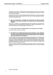 Niedersächsischer Landtag – 18. Wahlperiode Drucksache 18/6193 Die Ergebnisse der einzelnen Innovatorenrunden werden miteinander vernetzt und in einem iterati- ven Prozess in Abstimmung mit den Initiatoren in Handlungsempfehlungen, Maßnahmen, Projekte und Pilotvorhaben einfließen. Im weiteren Verlauf ist die 2. Konferenz Strategiedialog Automobilwirtschaft in Niedersachen geplant. Dabei sollen die bis dahin erzielten Ergebnisse und die bereits in Umsetzung gebrachten Maßnah- men öffentlich vorgestellt werden. 12. Gibt es einen Maßnahmen- und Zeitplan über erforderliche oder hilfreiche politische Maßnahmen, die die Folgen des Wandels in der niedersächsischen Automobilwirtschaft abmildern? Wie zu Frage 11 ausgeführt, ist der Strategiedialog auf drei Jahre ausgelegt. Die Innovatorenrunden erarbeiten derzeit ihre Handlungsempfehlungen, Maßnahmen, Projekte und Pilotvorhaben. Ein ab- schließender Maßnahmen- und Zeitplan liegt daher derzeit nicht vor. 13. Falls ja, welche Inhalte hat der Maßnahmenplan, und wie gestaltet sich der Zeitplan? Es wird auf die Antwort zu Frage 12 verwiesen. 14. Was wird/kann die Landesregierung darüber hinaus unternehmen, um den „tiefgreifen- den Wandel“ (https://www.mw.niedersachsen.de/startseite/themen/wirtschaft/industrie/ automobilindustrie/automobilindustrie-in-niedersachsen-16005.html) in der niedersäch- sischen Automobilwirtschaft zu flankieren? Im Juni 2019 haben sich die drei „Automobilländer“ Baden-Württemberg, Bayern und Niedersachsen mit einem gemeinsamen Positionspapier an die Bundesregierung gewendet und u. a. konkrete Maß- nahmen zum Ausbau der Elektromobilität sowie zur Förderung der Entwicklung alternativer Antriebs- technologien, von künstlicher Intelligenz und des autonomen Fahrens aufgefordert. Außerdem haben die Ministerpräsidenten der Länder eine enge Zusammenarbeit zur gemeinsamen Begleitung des Wandels in der Automobilindustrie vereinbart. Sollten sich parallel zum Strategiedialog weitere konkrete Ansätze ergeben, mit denen die Landes- regierung die Transformation in der Automobilwirtschaft flankieren kann, wird sie diese aufgreifen und prüfen. (Verteilt am 09.04.2020) 4