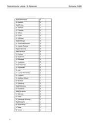 Niedersächsischer Landtag – 18. Wahlperiode Drucksache 18/8858 Stadt Delmenhorst 0 - LK Diepholz 0 - Stadt Emden 1 - LK Emsland 1 - LK Friesland 2 - LK Gifhorn 1 - LK Goslar 0 - LK Göttingen 1 - Stadt Göttingen 0 - LK Grafschaft Bentheim 2 - LK Hameln-Pyrmont 0 - Region Hannover 4 - Stadt Hannover 6 - LK Harburg 4 - LK Heidekreis 1 - LK Helmstedt 0 - LK Hildesheim 2 - Stadt Hildesheim 3 - LK Holzminden 0 - LK Leer 0 - LK Lüchow-Dannenberg 2 - LK Lüneburg 1 - LK Nienburg (Weser) 1 - LK Northeim 1 - LK Oldenburg 2 - Stadt Oldenburg 0 - LK Osnabrück 9 - Stadt Osnabrück 2 - LK Osterholz 3 - LK Peine 3 - LK Rotenburg (Wümme) 4 - Stadt Salzgitter 1 - LK Schaumburg 1 - LK Stade 1 - LK Uelzen 1 - 2
