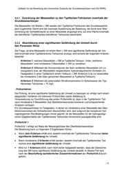 Leitfaden für die Bewertung des chemischen Zustands der Grundwasserkörper nach EG-WRRL 4.2.1 Zuordnung der Messstellen zu den Typflächen/Teilräumen innerhalb der Grundwasserkörper Die Messstellen mit Werten > SW werden den Typflächen/Teilräumen des Grundwasserkör- pers zugeordnet. Damit wird die maximale Ausdehnung der Belastung, die durch eine Über- schreitung der Schwellenwerte an einer Messstelle angezeigt wird, auf eine Fläche innerhalb der betroffenen Typfläche/des betroffenen Teilraumes beschränkt. 4.2.2 Abschätzung einer signifikanten Gefährdung der Umwelt durch den Parameter Nitrat Die Frage, ob eine Messstelle mit einem Wert > SW eine signifikante Gefährdung der Um- welt innerhalb einer Typfläche/eines Teilraumes anzeigt, wird anhand der folgenden Kriterien bewertet: Kriterium 1: mehrere Messstellen > SW je Typfläche/Teilraum. Unter „mehreren Messstellen“ sind mindestens 3 Messstellen > SW zu verstehen. Kriterium 2: Mittelwert der Konzentrationen der flach verfilterten Messstellen (im Lo- ckergestein) bzw. der Messstellen vergleichbarer hydrostratigrafischer Einheiten (im Festgestein) in einer Typfläche/in einem Teilraum > SW (Kriterium 2 ist nur anwendbar bei mindestens 3 der oben genannten Messstellen je Typfläche/Teilraum). Kriterium 3: Mittelwert der potenziellen Nitratkonzentration im Sickerwasser der Typ- fläche/des Teilraumes > 75 mg/l. - Prüfverfahren Die Prüfung, ob eine signifikante Gefährdung der Umwelt zu besorgen ist, erfolgt nach einem abgestuften Verfahren mit mehreren Prüfschritten (siehe Abbildung 2). Voraussetzung zur Durchführung des ersten Prüfschritts ist, dass in der Typfläche/im Teil- raum mindestens 5 Messstellen des Überblickmessnetzes existieren und entsprechende Analysen vorliegen. Für Grundwasserkörper im Festgestein, in denen an mindestens einer Messstelle des Über- blicksmessnetzes der Schwellenwert überschritten wird, wird aufgrund der komplexen hyd- rogeologischen Randbedingungen immer geprüft, ob die Messstellen für die hydrogeologi- schen Gegebenheiten der Typfläche/des Teilraumes hinreichend aussagekräftig sind. Prüfschritt 1 Prüfschritt 1 erfolgt auf Basis der Messergebnisse des Überblicksmessnetzes. Die Bewertung kann zu folgenden 3 Ergebnissen führen: Wenn kein Kriterium erfüllt wird, besteht innerhalb der Typfläche/des Teilraumes keine signifikante Gefährdung der Umwelt. Wenn mindestens 2 Kriterien erfüllt werden, besteht innerhalb der Typfläche/des Teil- raumes eine signifikante Gefährdung der Umwelt. Wird nur 1 Kriterium erfüllt, kann nicht sicher festgestellt werden, dass die Überschrei- tung des SW keine signifikante Gefährdung der Umwelt darstellt. In diesem Fall wird nach der Beschaffung sachdienlicher Zusatzinformationen der Prüfschritt 2 durch- geführt. 11