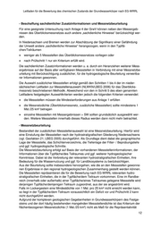 Leitfaden für die Bewertung des chemischen Zustands der Grundwasserkörper nach EG-WRRL - Beschaffung sachdienlicher Zusatzinformationen und Messnetzbeurteilung Für eine geeignete Untersuchung nach Anlage 4 der GrwV können neben den Messergeb- nissen des Überblicksmessnetzes auch andere „sachdienliche Hinweise“ berücksichtigt wer- den. In Niedersachsen und Bremen werden zur Abschätzung der Signifikanz einer Gefährdung der Umwelt andere „sachdienliche Hinweise“ herangezogen, wenn in den Typflä- chen/Teilräumen weniger als 5 Messstellen des Überblicksmessnetzes vorliegen oder nach Prüfschritt 1 nur ein Kriterium erfüllt wird. Die sachdienlichen Zusatzinformationen werden u. a. durch ein Heranziehen weiterer Mess- ergebnisse auf der Basis aller verfügbaren Messstellen in Verbindung mit einer Messnetzbe- urteilung mit Berücksichtigung zusätzlicher, für die hydrogeologische Beurteilung verwertba- rer Informationen gewonnen. Die Auswahl zusätzlicher Messstellen erfolgt gemäß den Schritten 1 bis 4 der im nieder- sächsischen Leitfaden zur Messstellenauswahl (NLWKN/LBEG 2006) für das Überblicks- messnetz beschriebenen Methodik. Abweichend von den in Schritt 5 des eben genannten Leitfadens festgelegten Auswahlkriterien werden jedoch die folgenden Kriterien verwendet: die Messstellen müssen die Mindestanforderungen aus Anlage 1 erfüllen die Messnetzdichte (Überblicksmessnetz, zusätzliche Messstellen) sollte mindestens 1 Mst./25 km² betragen einzelne Messstellen mit Messergebnissen > SW sollten grundsätzlich ausgewählt wer- den. Weitere Messstellen innerhalb dieses Radius werden dann nicht mehr betrachtet. - Messnetzbeurteilung Bestandteil der zusätzlichen Messstellenauswahl ist eine Messnetzbeurteilung. Hierfür wird eine Einstufung der Messstellen nach der hydrostratigrafischen Gliederung Niedersachsens (vgl. Geofakten 21; LBEG 2005) durchgeführt. Als Grundlage dient dabei die geographische Lage der Messstelle, das Schichtenverzeichnis, die Tiefenlage der Filter- / Beprobungstiefe und ggf. hydrogeologische Schnitte. Die Messnetzbeurteilung erfolgt auf Basis der vorhandenen Messstelleninformationen, der Informationen über die Typfläche/des Teilraumes und ggf. weiterer hydrogeologischer Kenntnisse. Dabei ist die Verbreitung der relevanten hydrostratigrafischen Einheiten, ihre Bedeutung für die Wassernutzung und ggf. für Landökosysteme zu berücksichtigen. Aus der Beurteilung sollte insbesondere hervorgehen, wie die an den Messstellen gewonne- nen Ergebnisse in den regional hydrogeologischen Zusammenhang gestellt werden können. Die Messstellen repräsentieren die für die Bewertung nach EG-WRRL relevanten hydro- stratigrafischen Einheiten, die in der Typfläche/dem Teilraum vorkommen. Eine im Randbe- reich (innerhalb oder außerhalb) einer Typfläche/eines Teilraumes gelegene Messstelle wird derjenigen Typfläche/demjenigen Teilraum zugeordnet, aus der sie angeströmt wird. Falls im Lockergestein eine Mindestdichte von 1 Mst. pro 25 km² nicht erreicht werden kann, so liegt in der Typfläche/dem Teilraum voraussichtlich ein Defizit vor und Prüfschritt 2 kann nicht durchgeführt werden. Aufgrund der komplexen geologischen Gegebenheiten in Grundwasserkörpern des Festge- steins und der dort häufig bestehenden mangelnden Messstellendichte ist das Kriterium der flächenbezogenen Messnetzdichte (1 Mst./25 km²) nicht als Maß für die Repräsentativität 12