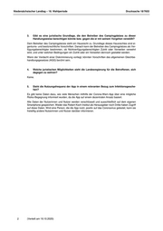 Niedersächsischer Landtag – 18. Wahlperiode Drucksache 18/7653 Kleine Anfrage zur schriftlichen Beantwortung gemäß § 46 Abs. 1 GO LT mit Antwort der Landesregierung Anfrage der Abgeordneten Dana Guth (AfD) Antwort des Niedersächsischen Ministeriums für Soziales, Gesundheit und Gleichstellung namens der Landesregierung Nutzung der Corona-Warn-App als Zutrittsvoraussetzung für Urlauber Anfrage der Abgeordneten Dana Guth (AfD), eingegangen am 21.08.2020 - Drs. 18/7386 an die Staatskanzlei übersandt am 14.09.2020 Antwort des Niedersächsischen Ministeriums für Soziales, Gesundheit und Gleichstellung namens der Landesregierung vom 12.10.2020 Vorbemerkung der Abgeordneten Wie die Ostfriesen-Zeitung am 16.08.2020 berichtet, verweigert der Campingplatz Dyksterhus in Krummhörn denjenigen Urlaubern, welche die Corona-Warn-App nicht nutzen, den Zutritt zu seinem Campingplatz. Die Nutzung der vom Robert Koch-Institut entwickelten App wurde von der Bundes- regierung als freiwillig deklariert. Die Niedersächsische Verbraucherzentrale weist auf ihrer Website darauf hin, dass aus einer Nichtnutzung der App keinerlei Nachteile entstehen dürfen. Der Zugang weder zur Arbeit noch zu Gebäuden, Freizeiteinrichtungen oder Veranstaltungen dürfe von der Nut- zung der App abhängig gemacht werden. Bereits vertraglich gebuchte Urlaubsplätze könnten nicht im Nachhinein mit einer solchen Einschränkung versehen werden. (https: //www.verbraucherzent- rale-niedersachsen.de/campingplatzbetreiber-macht-die-corona-app-zur-pflicht ) Hinzu kommt, dass die Installation auf vielen Smartphones nicht möglich war, viele ältere Menschen kein Smartphone besitzen, nur ein Bruchteil der Nutzer die App auch aktiv verwendet oder eine po- sitive Testung dort einträgt, in manchen Fahrzeugtypen des öffentlichen Nahverkehrs sich die Blue- tooth-Technik nicht mit anderen Geräten verknüpft. Sollte das Beispiel des Campingplatzes Schule machen, wird eine Ausgrenzung nicht unerheblicher Teile der Bevölkerung aus dem öffentlichen Leben provoziert. 1. Wie steht die Landesregierung zu diesem Vorfall? Die Corona-Warn-App ist ein Angebot der Bundesregierung. Sowohl der Download als auch die Nut- zung der App sind vollkommen freiwillig und auch kostenlos. In der Niedersächsischen Corona-Ver- ordnung sind Maßnahmen festgelegt worden, wie der Umgang miteinander geregelt werden soll. Die Corona-Warn-App gehört nicht zu diesen Maßnahmen. Die App ist weder dazu gedacht noch dafür geeignet, Zugangsbeschränkungen für Einrichtungen vorzunehmen. 2. Wird die Landesregierung Maßnahmen ergreifen, damit sich solche Vorfälle nicht wie- derholen? Wenn ja, welche? Nein. 1
