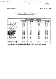 ,; ·'-' Anlage 3 X170a-Q790.A10-4- Kiel, den 16.3.1989 Entwickluna der Relation Schüler je Lehrer in den benJfsbildenden Schulen 1) ----------------------- -------------------: Schüler je Lehrer im Schuljahr • • • :--------------------- ---------: ' :' ;Berufsschule ~)-----: ' 1984/85 ----------· 58,9 _____ __________------------: 1985/86 58,4 , 1986/87 56,0 1987/88 52,3 ;Berufsbef. Jahr 14,1 13,2 12,6 11 '1 ;Berufsarundb.jahr 14,9 14,4 13,4 12,4 :BenJfsaufbauschulen 22,6 23,4 24,8 23,3 davon in Vollzeitform 17,9 16,8 18,5 16,7 Teilzeitform 45,7 63,0 56,3 56,0 ; BenJfsfachschule 17,1 17,3 17,0 16,4 :Filchoberachule 19,6 20,4 19,2 19,7 : Fac:homnasiUD 14,9 14,9 14,9 14,8 :Fachschulen 14,3 14,5 14,6 14,6 davon in '' Vollzeitform 14,2 14,3 14,5 14,3 '' Teilzeitform 23,3 36,7 33,7 55,7 : Berufsalredemi e 51,0 47,0 57,3 68,7 -----------:-----------~-------------,------------- :vollzeitform insg. 16,0 16,0 15,8 15,4 : Teilzeitform insg. 58,8 58,4 55,9 52,3 --:----------:----------:-------------:------------- 1 ) öffentliche und private Schulen, entspr. Dok. 105 des Sekr. der KMK 2) in Teilzeitform