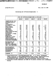 :1 "'. Anlaqe 8 X170a-0790 .A1D-4- Kiel, den 16.3.1989 Entwickluna der Differenzierunasstunden 1) :------· --------------: : Zahl der Differenzierunasstunden im Schuljahr • 0 •• :----------- 1984/85 1985/86 1986/87 -----------: 1987/88 1988/89 ~·• :-------------------:---------I-----------:------ : Juaendliche llli t Aus- : :bildun&sverbältnis :davon :im Berufsfeld :Wirtschaft u. Verw. 155 160 140 163 173 :Metall technik 795 i82 888 948 1.121 :Elektrotechnik 434 418 481 491 504 : Bautechnik 246 224 243 309 330 : Holztechnik 100 113 106 126 131 :Textil tecbnik o -2 11 20 18 11 :Cheade,Physik,Biologie' 22 16 1 9 9 : Drucktechni.k 27 79 78 69 82 :Farbtecbnik u. Ra~Da. 63 76 78 89 55 :Gesundheit 67 39 70 118 108 : Körperpfleae 98 80 82 70 120 : Ernilhruna u. Hauaw. 215 303 254 303 331 : Agrarwirtschaft 47 50 66 68 105 : Praktikantenausbilda. 16 7 10 20 28 : Sonderausbildunp~e, 9 0 • 4 9 -4 -4 ----------------- :Berufs~.jahr 618 -:---------:------ 593 540 ------ -------- 522 511 :Berufsbef. Jahr 359 371 361 279 264 :Berufsvorb.-.ssnahmen 73 30 9 41 48 :Jgdl. ohne Ausbilduni 36 38 23 44 25 :--------· 1.041 1.004 1.007 1.149 : Berufsfachschule 1.026 : Berufsaufbauschule -25 -6 4 9 -3 :Fachoberschule 37 49 37 51 74 :Fscho-il• 224 215 219 225 286 : Fliehschule 528 518 518 573 491 •• : Insgesamt 2) - ------.-------- ---------- --------- -----------: 5.182 5.197 5.239 5.543 5.949 •• :---- ---------------------------------------------------------: 1) Fachdifferenzieruna in Berufsgruppenklassen gem. 15 ( 4) SchulG, jahrpngsbe- zogener Unterricht in ausbildunlsjahrUbergreifenden Klassen, Fachdifferenzieruna im Schwerpunktbereich, Gruppenteiluni in der fachpraktischen Ausbildune, Doppelbesetzung wegen praktischer Fachkunde/LaOOr<lbungen, Wahlpflichtunterricht 2) Differenzen zwischen Gesamtzahl und S~m~~e der Teilzahlen entstehen durch unabhängige Rundune