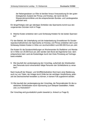Schleswig-Holsteinischer Landtag - 15. Wahlperiode Drucksache 15/3560 der Nebengewässer zur Elbe ist darüber hinaus Voraussetzung für den guten ökologischen Zustand der Pinnau und Krückau, der durch die EU- Wasserrahmenrichtlinie und die entsprechenden Bundes- und Landesgesetze gefordert wird. Ein längerfristiges oder gar ständiges Schließen des Sperrwerks kommt aus den vorgenannten Gründen nicht in Frage. 8. Welche Kosten entstehen dem Land Schleswig-Holstein für die beiden Sperrwer- ke? Für den Betrieb, die Unterhaltung und die Instandsetzung (Investitionen für Sonder- reparaturmaßnahmen) der Sperrwerke an Krückau und Pinnau entstehen dem Land Schleswig-Holstein Kosten in Höhe von durchschnittlich rund 800.000 Euro pro Jahr. Die Kosten für die Sonderschließungen an Wochenenden für Radfahrer und Wande- rer in Höhe von 25.000 Euro pro Jahr werden dem Bund als Eigentümer bzw. dem- entsprechend dem Land als Kostenträger durch den Kreis Pinneberg auf Vertrags- basis erstattet. 9. Wie beurteilt die Landesregierung den Vorschlag, außerhalb der Arbeitszeiten des Personals durch ehrenamtlich tätige Personen den Schließdienst zu verse- hen? Nach Auskunft der Wasser- und Schifffahrtsdirektion Nord kann einer Bedienung, auch nur von Teilen, der Anlage durch Dritte bei der wichtigen Verpflichtung, jeder- zeit die Deichsicherheit herstellen zu können, in keinem Fall zugestimmt werden. 10. Wie beurteilt die Landesregierung den Vorschlag, die Personalkosten für die zu- sätzlichen Schließzeiten durch Sponsoring (zum Beispiel Gaststätten, Hotels usw.) zu finanzieren? Der Vorschlag wird grundsätzlich positiv bewertet (s. Antwort zu Frage 6). 4