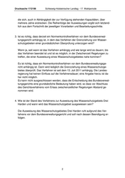 Drucksache 17/2199 Schleswig-Holsteinischer Landtag - 17. Wahlperiode die sich, auch in Abhängigkeit der zur Verfügung stehenden Kapazitäten, über mehrere Jahre erstrecken. Die Reihenfolge der Ausweisungen ergibt sich letztend- lich aus dem Fortschritt der jeweiligen Vorarbeiten und Bearbeitungsschritte. 3. Ist es richtig, dass derzeit ein Normenkontrollverfahren vor dem Bundesverwal- tungsgericht anhängig ist, in dem das Verfahren der Grenzziehung von Wasser- schutzgebieten einer grundsätzlichen Überprüfung unterzogen wird? Wenn ja, seit wann ist das Verfahren anhängig und wie lange wird es dauern, bis das Verfahren beendet ist und ist es möglich, in der Zwischenzeit Regelungen zu treffen, die einer Ausweisung eines Wasserschutzgebietes nahe kommen? Es ist richtig, dass ein Normenkontrollverfahren vor dem Bundesverwaltungsge- richt anhängig ist. Darin wird lediglich die Grenzziehung eines Wasserschutzge- bietes überprüft. Das Verfahren ist seit dem 13. Juli 2011 anhängig. Die Landes- regierung hat keinen Einfluss auf die Verfahrensdauer; eine Angabe hierzu ist da- her nicht möglich. Es kann nicht ausgeschlossen werden, dass die Entscheidung des Bundesverwal- tungsgerichts eine grundsätzliche Bedeutung haben wird, so dass vor Abschluss des Gerichtsverfahrens vom Erlass zwischenzeitlicher Regelungen Abstand ge- nommen wird. 4. Wie ist der Stand des Verfahrens zur Ausweisung des Wasserschutzgebiets Drei Harden und wann wird das Wasserschutzgebiet ausgewiesen sein? Die Ausweisung des Wasserschutzgebietes Drei Harden ruht aufgrund des Ver- fahrens vor dem Bundesverwaltungsgericht und soll nach dessen Beendigung er- folgen. 2