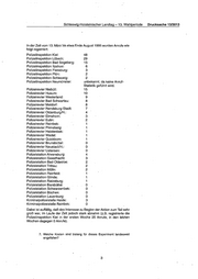Schleswig-Holsteinischer Landtag - 13. Wahlperiode Drucksache 1313013 ln der Zeit vom 13. März bis etwa Ende August 1995 wurden Anrufe wie folgt registriert: · Polizeiinspektion Kiel: 48 Polizeiinspektion Lübeck: 29 Polizeiinspektion Bad Segeberg: 15 Polizeiinspektion ltzehoe: 6 Polizeiinspektion Flensburg: 3 Polizeiinspektion Plön: 2 Polizeiinspektion Schleswig: 2 Polizeiinspektion Neumünster: unbekannt, da keine Anruf- Statistik geführt wird. Polizeirevier Niebüll: 15 Polizeirevier Husum: 10 Polizeirevier Westerland: 9 Polizeirevier Bad Schwartau: 8 Polizeirevier Meldorf: 8 Polizeirevier Rendsburg-Stadt: 7 Polizeirevier Oldenburg/H.: 4 Polizeirevier Elmshorn: 3 Polizeirevier Eutin: 2 Polizeirevier Reinbek: 1 Polizeirevier Pinneberg: 1 Polizeirevier Halstenbek: 1 Polizeirevier Wedel: 1 Polizeirevier Quickborn: 1 Polizeirevier Brunsbüttel: 0 Poliz(Jirevier Neustadt/H.: 0 Polizeirevier Uetersen: 0 Polizeistation Ahrensburg: 4 Polizeistation Geestflächt 3 Polizeistation Bad Oldesloe: 2 Polizeistation Trittau: 2 Polizeistation Mölln: 2 Polizeistation Reinfeld: 1 Polizeistation Glinde: 1 Polizeistation Ratzeburg: 1 Polizeistation Barsbüttel: 0 Polizeistation Schwarzenbek: 0 Polizeistation Büchen: 0 Polizeistation Lauenburg: 0 Kriminalpolizeistelle Heide: 3 Kriminalpolizeistelle Reinbek: 0 Dabei ist auffällig, daß das Interesse zu Beginn der Aktion zum Teil sehr groß war, im Laufe der Zeit jedoch stark abnahm (z.B. registrierte die Polizeiinspektion Kiel in der ersten Woche 25 Anrufe, in den letzten Wochen dagegen 0 Anrufe). 7. Welche Kosten sind bislang für dieses Experiment landesweit angefallen? 3