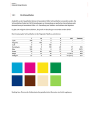Kapitel 1 Corporate Design Elements 1.2.1 Die Schmuckfarben Zusätzlich zu den Hauptfarben können in besonderen Fällen Schmuckfarben verwendet werden. Die Schmuckfarben finden bei CMYK-Gestaltungen nur Verwendung zur grafischen Hervorhebung oder Kennzeichnung in besonderen Fällen, z. B. Darstellung von Tabellen, von Rubriken oder Registern. Es gibt acht mögliche Schmuckfarben, die jeweils in Abstufungen verwendet werden dürfen. Die Umsetzung der Schmuckfarben ist der folgenden Tabelle zu entnehmen: Cyan Magenta Gelb Dunkelgrün Blau Braun Beige Hellgrün C 100 0 0 100 100 30 5 55 M 0 100 0 0 75 80 10 0 Y 0 0 100 100 0 100 30 80 K 0 0 0 20 35 55 0 0 HKS – – – 57 47 78 71 (30 %) 67 (55 %) Niedrige bzw. flimmernde Farbkontraste bei gestalterischen Elementen sind nicht zugelassen. Pantone – – – 355 2925 478 468 367