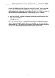 Schleswig-Holsteinischer Landtag - 15. Wahlperiode Drucksache 15/1312 Eine der Frage entsprechende Statistik wird nicht zentral geführt, da die Urlaubspla- nung vor Ort durchgeführt wird. Die Erhebung und Berechnung bei jeder Polizei- dienststelle erfordert zusätzlichen administrativen Aufwand und ist in der Kürze der für die Beantwortung von Kleinen Anfragen zugestandenen Zeit nicht zu leisten. 3. Sind aus 2000 bzw. Vorjahren angefallene Überstunden im Kreis Stormarn noch nicht abgebaut worden? Wenn ja, wie viele? Der in der Antwort zu Frage 1 aufgeführte Mehrstundenstand stellt sich als eine mo- natliche Fortschreibung aller bei den Beamtinnen und Beamten vorhandenen Mehr- arbeitsstunden dar. Eine differenzierte Darstellung der noch aus Vorjahren vorhande- nen und eventuell abzubauenden Mehrarbeitsstunden ist nicht möglich. 2