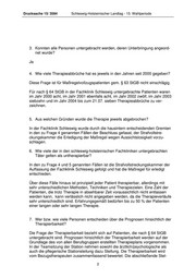Drucksache 15/ 3584 Schleswig-Holsteinischer Landtag - 15. Wahlperiode 3. Konnten alle Personen untergebracht werden, deren Unterbringung angeord- net wurde? Ja 4. Wie viele Therapieabbrüche hat es jeweils in den Jahren seit 2000 gegeben? Diese Frage ist für Maßregelvollzugspatienten gem. § 63 StGB nicht einschlägig. Für nach § 64 StGB in der Fachklinik Schleswig untergebrachte Patienten waren im Jahr 2000 acht, im Jahr 2001 ebenfalls acht, im Jahr 2002 zwölf, im Jahr 2003 siebzehn und im Jahr 2004 bis zum 21.07. sieben Therapieabbrüche zu ver- zeichnen. 5. Aus welchen Gründen wurde die Therapie jeweils abgebrochen? In der Fachklinik Schleswig wurde durch die hausintern entscheidenden Gremien in den zu Frage 4 genannten Fällen der Beschluss gefasst, der Strafvollstre- ckungskammer die Erledigung der Maßregel wegen Aussichtslosigkeit vorzu- schlagen. 6. Wie viele der in den schleswig-holsteinischen Fachkliniken untergebrachten Täter gelten als untherapierbar? In den zu Frage 4 und 5 genannten Fällen ist die Strafvollstreckungskammer der Auffassung der Fachklinik Schleswig gefolgt und hat die Maßregel für erledigt entschieden. Über diese Fälle hinaus ist prinzipiell jeder Patient therapierbar, allerdings mit sehr unterschiedlichen Methoden, Techniken und Therapiezielen. Eine Zahl der Patienten, die trotz Therapie in absehbarer Zeit voraussichtlich nicht entlassen werden kann, kann verlässlich nicht angegeben werden, da die Therapieverläufe sehr unterschiedlich sind. Erfahrungsgemäß bedürfen bis zu 50 % der Patienten einer langen oder sehr langen Therapie. 7. Wer bzw. wie viele Personen entscheiden über die Prognosen hinsichtlich der Therapierbarkeit? Die Frage der Therapierbarkeit bezieht sich auf Patienten, die nach § 64 StGB untergebracht sind. Prognosen hinsichtlich der Therapierbarkeit werden auf der Grundlage des von allen Berufsgruppen erstellten Therapieplans vorgenommen. In der Teamsitzung der Station nehmen sowohl die ärztlich/psychologische als auch die pflegerische Stationsleitung dazu Stellung. Die Therapierbarkeit wird vom Bezugstherapeuten zusammenfassend bewertet. Die abschließende Stel- 2