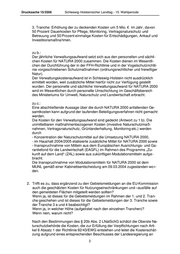 Drucksache 15/3306 Schleswig- Holsteinischer Landtag - 15. Wahlperiode 3. Tranche: Erhöhung der zu deckenden Kosten um 5 Mio. € im Jahr , davon 50 Prozent Dauerkosten für Pflege, Monitoring, Vertragsnaturschutz und Betreuung und 50 Prozent einmalige Kosten für Entschädigungen, Ankauf und Investitionsmaßna hmen. zu b.: Der jährliche Verwaltungsaufwand setzt sich aus den personellen und sächli- chen Kosten für NATURA 2000 zusammen. Die Kosten dienen im Wesentli- chen der Durchführung der in der FFH-Richtlinie und in der Vogelschutzrichtli- nie vorgeschriebenen Schutzmaßnahmen (ordnungsrechtlicher und freiwilliger Natur). Der Verwaltungskostenaufwand ist in Schleswig-Holstein nicht ausdrücklich ermittelt worden, weil zusätzliche Mittel hierfür nicht zur Verfügung gestellt wurden. Der personelle und sächliche Verwaltungsaufwand für NATURA 2000 wird im Wesentlichen durch personelle Umschichtung im Geschäftsbereich des Ministeriums für Umwelt, Naturschutz und Landwirtschaft erbracht. zu c.: Eine abschließende Aussage über die durch NATURA 2000 anfallenden Ge- samtkosten kann aufgrund der laufenden Beteiligungsverfahren nicht gemacht werden. Die Kosten für den Verwaltungsaufwand sind gedeckt (Antwort zu 1 b). Die unmittelbaren maßnahmenbezogenen Kosten (investive Naturschutzmaß- nahmen, Vertragsnaturschutz, Grünlanderhaltung, Monitoring etc.) werden durch - Konzentration der Naturschutzmittel auf die Umsetzung NATURA 2000, - im Haushalt 2004/2005 etatisierte zusätzliche Mittel für NATURA 2000 sowie - Inanspruchnahme von Mitteln aus dem Europäischen Ausrichtungs- und Ga- rantiefond für die Landwirtschaft (EAGFL) im Rahmen des Programms „Zu- kunft auf dem Land“ (ZAL) sowie aus zukünftigen Modulationsmitteln aufge- bracht. Die Inanspruchnahme von Modulationsmitteln für NATURA 2000 ist dem MUNL gemäß einer Kabinettsentscheidung am 09.03.2004 zugestanden wo r- den. 2. Trifft es zu, dass ergänzend zu den Gebietsmeldungen an die EU-Kommission auch die geschätzten Kosten für Nutzungseinschränkungen und –ausfälle auf den gemeldeten Flächen mitgeteilt werden sollten? Wenn ja, ist dieses für die Gebietsmeldungen im Rahmen der 1. und 2. Tran- che geschehen und ist dieses für die Gebietsmeldungen der 3. Tranche sowie der Tranche 3 a und 4 beabsichtigt? Wenn ja, in welcher Höhe (aufgelistet nach den einzelnen Tranchen)? Wenn nein, warum nicht? Nach den Bestimmungen des § 20b Abs. 2 LNatSchG schätzt die Oberste Na- turschutzbehörde die Kosten, die zur Erfüllung der Verpflichtungen nach Arti- kel 6 Absatz 1 der Richtlinie 92/43/EWG entstehen und leitet die Kostenschät- zung aufgrund eines entsprechenden Beschlusses der Landesregierung an 2