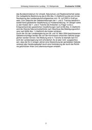 Schleswig- Holsteinischer Landtag - 15. Wahlperiode Drucksache 15/3306 das Bundesministerium für Umwelt, Naturschutz und Reaktorsicherheit weiter. Die maßgebliche Bestimmung des § 20b Abs. 2 LNatSchG wurde erst mit der Neufassung des Landesnaturschutzgesetzes vom 18. Juli 2003 in Kraft ge- setzt. Zum Zeitpunkt der Gebietsmeldungen der 1. und 2. Tranche bestand in- soweit keine gesetzliche Verpflichtung zur Kostenschätzung. Im Übrigen siehe zu den Kosten der 1. und 2. Tranche die Antworten zu Frage 1a bis c. Entsprechend den gesetzlichen Verpflichtungen nach § 20b Abs. 2 LNatSchG wird die Oberste Naturschutzbehörde nach Abschluss des Beteiligungsverfa h- rens nach §20b Abs. 1 LNatSchG die Kosten schätzen. Durch die von der Landesregierung am 09. und 16. März 2004 beschlossenen Gebietsvorschläge werden die von der Kommission erkannten Defizite ausge- glichen werden können. Die Meldung einer 4. Tranche ist deshalb nach A n- sicht der Landesregierung nicht erforderlich. Es ist aber nicht ausgeschlos- sen, dass die EU in einigen Jahren eine Überprüfung der gemeldeten Gebiete verlangt oder Handlungsbedarf durch eine Veränderung der durch die Richtli- nie geschützten Arten und Lebensraumtypen entsteht. 3
