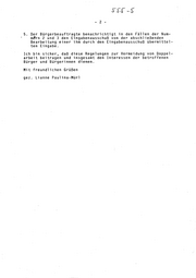 - 2 - 5. Der Bürgerbeauftragte benachrichtigt in den Fällen der Num- m~rn 2 und 3 den Eingabenausschuß von der abschließenden Bearbeitung einer ihm durch den Eingabenausschuß übermittel- ten Eingabe. Ich bin sicher, daß diese Regelungen zur Vermeidung von Doppel- arbeit beitragen und insgesamt den Interessen der betroffenen Bürger und Bürgerinnen dienen. Mit freundlichen Grüßen gez. Lianne Paulina-Mürl