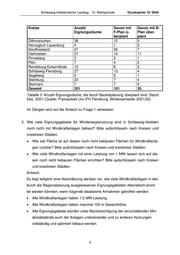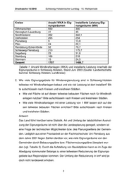 Drucksache 15/2940 Schleswig-Holsteinischer Landtag - 15. Wahlperiode Nach dieser von der Firma Windtest Kaiser-Wilhelm-Koog GmbH vorgenomme- nen Abschätzung würde sich das Ergebnis auf ca. 2.230 Windkraftanlagen mit ca. 3.350 MW Leistung belaufen. Im Übrigen wird auf die Antworten zu den Fragen 1 und 2 verwiesen. 4