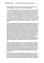Drucksache 15/1778 Schleswig-Holsteinischer Landtag - 15. Wahlperiode Ministerpräsidentin Heide Simonis hat in ihrer Eröffnungsrede zu dem Thema Ko- operationsprojekte mit ausländischen Partnern folgendes ausgeführt: „ ..... Aber Schleswig-Holstein kann mit seinen hohen Kompetenzen in der Medi- zintechnik, in der medizinischen Aus- und Weiterbildung oder mit seinen Erfah- rungen im Gesundheitswesen seinen Teil dazu beitragen, dem WHO-Ziel näher zu kommen. So arbeiten zum Beispiel die Fachhochschule Lübeck, die Dräger Forum GmbH und die CBB Software GmbH mit der University of Science –and Technology in Kumasi/Ghana zusammen, um dort die Medizintechnik und –in- formatik voran zu bringen. Solche Projekte, von denen es mehrere gibt – das eine habe ich gerade nur beispielhaft genannt – können Anstöße für neue Kooperatio- nen und Kontakte geben, die für alle Partner von Nutzen sind.....“ Daneben hat die Ministerpräsidentin noch auf die erfolgreiche Patientenbrücke mit Norwegen ver- wiesen. Auf dem Kongress spielten Kooperationsprojekte mit ausländischen Partnern in fol- genden Programmteilen eine Rolle: In der Runde „Nachgefragt“ im Anschluss an die Hauptreferate erläuterte Dr. Wolfgang Reim von Dräger Medizintechnik weltweite Aus- und Weiterbildungsprojekte im Gesundheitswesen, u.a. in der Zusammenar- beit mit Saudi-Arabien (z. B. Ausbildungszentrum in Riyad); Prof. Dr. Bernd Kremer, Direktor der Klinik für allgemeine Chirurgie und Thoraxchirurgie an der CAU Kiel erläuterte die Zusammenarbeit mit Zhejiang/China und Dr. Carl Hermann Schleifer (Damp-Holding AG) äußerte sich zum Thema Behandlung norwegischer Patienten. Das Forum 3 „Exportschlager Gesundheit: Chance für Schlesig-Holstein“ beschäf- tigte sich ebenfalls mit dem Thema Zusammenarbeit mit ausländischen Partnern. Referenten waren: Dr. Philip Lubinus, Lubinus Clinicum, Kiel, Thema Patienten aus dem Ausland; Dr. Jürgen Brenner, European Surgical Institute, Norderstedt, Thema Fortbildung für Ärzte und OP-Personal aus ganz Europa; Axel Steller, Beta- Unternehmensgruppe, Bonn, Thema Patientenwerbung und Vermittlung, Internatio- nale Vermarktung für Gesundheitsstandorte. Dabei konnten aus Zeitgründen nicht alle Kooperationsprojekte mit ausländischen Partnern erläutert und diskutiert wer- den. Die weitere Entwicklung der bei dem Treffen mit dem Außenminister von Oman am 02. März 2001 erörterten Projekte wurde u. a. von der Erarbeitung einer Machbar- keitsstudie abhängig gemacht. Bereits vor dem Vorliegen dieser Machbarkeitsstu- die fanden zwar weitere Gespräche zwischen dem Außenministeriums von Oman und Vertreter deutscher Unternehmen (u. a. ein Treffen am 19. April 2001 in Mün- chen) statt, bei denen über die Projektbedingungen im einzelnen gesprochen wurde. Es ist dann aber nicht zur Konkretisierung des Projekts gekommen, so dass ent- sprechende Überlegungen bei der Planung des Gesundheitskongresses nicht not- wendig waren. 5. Teilt die Landesregierung die bedenkenswerte Auffassung, dass das Angebot an den Chef der Staatskanzlei vom 02. März 2001, Aufsichtsratsmitglied einer Firma zu werden, die im Zusammenhang mit der gesundheitspolitischen Zusammenarbeit zwischen Oman und Schleswig-Holstein Aufträge erhalten will, nicht nur unsittlich ist, sondern möglicherweise auch den Tatbestand der versuchten Bestechung erfüllen 4