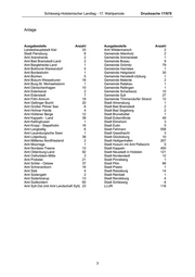 Schleswig-Holsteinischer Landtag - 17. Wahlperiode Drucksache 17/679 Anlage Ausgabestelle Anzahl Ausgabestelle Anzahl Landeshauptstadt Kiel 33 Amt Wilstermarsch 2 Stadt Flensburg 8 Gemeinde Altenholz 2 Amt Arensharde 2 Gemeinde Ammersbek 1 Amt Bad Bramstedt-Land 2 Gemeinde Bosau 9 Amt Bargteheide-Land 1 Gemeinde Grömitz 79 Amt Bokhorst-Wankendorf 5 Gemeinde Harrislee 1 Amt Bordesholm 1 Gemeinde Helgoland 30 Amt Büchen 5 Gemeinde Henstedt-Ulzburg 1 Amt Büsum-Wesseburen 18 Gemeinde Malente 2 Amt Burg-St. Michaelisdonn 1 Gemeinde Ratekau 1 Amt Dänischenhagen 10 Gemeinde Rellingen 1 Amt Eiderkanal 2 Gemeinde Scharbeutz 10 Amt Eiderstedt 7 Gemeinde Sylt 27 Amt Föhr-Amrum 19 Gemeinde Timmendorfer Strand 12 Amt Geltinger Bucht 20 Stadt Ahrensburg 1 Amt Großer Plöner See 6 Stadt Bad Bramstedt 2 Amt Hohner Harde 4 Stadt Bad Segeberg 2 Amt Hüttener Berge 12 Stadt Brunsbüttel 1 Amt Kappeln - Land 39 Stadt Eckernförde 49 Amt Kellinghusen 1 Stadt Elmshorn 3 Amt Kropp - Stapelholm 16 Stadt Eutin 5 Amt Langballig 6 Stadt Fehmarn 558 Amt Lauenburgische Seen 1 Stadt Geesthacht 3 Amt Lütjenburg 38 Stadt Glücksburg 10 Amt Mittleres Nordfriesland 2 Stadt Heiligenhafen 207 Amt Moorrege 1 Stadt Husum mit Amt Pellworm 5 Amt Nordsee-Treene 13 Stadt Kappeln 450 Amt Oldenburg-Land 92 Stadt Neustadt in Holstein 121 Amt Ostholstein-Mitte 3 Stadt Norderstedt 12 Amt Probstei 21 Stadt Pinneberg 1 Amt Schlei - Ostsee 37 Stadt Plön 66 Amt Schrevenborn 16 Stadt Preetz 1 Amt Siek 4 Stadt Ratzeburg 14 Amt Südangeln 2 Stadt Reinbek 1 Amt Süderbrarup 13 Stadt Rendsburg 4 Amt Südtondern 60 Stadt Schleswig 6 Amt Sylt-Ost (mit Amt Landschaft Sylt) 23 LLUR 118 3