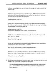 Drucksache 16/488 Schleswig-Holsteinischer Landtag - 16. Wahlperiode 1. Welche Informationen sind dem Landesnaturschutzbeauftragten von wem vo r- gelegt worden (bitte genau darstellen)? Dem Beirat des Landesnaturschutzbeauftragten ist am 30.11.2005 ein erstes Er- gebnis der Modellrechnungen zum fischereiwirtschaftlichen Schaden von Vertre- tern der Fischerei- und Naturschutzverwaltung vorgestellt worden, die einen In- terpretationsfehler in Bezug auf die Ergebnisse des Kormoran-Monitorings ent- hielt, der zwischenzeitlich bereinigt wurde. 2. Teilt die Landesregierung die Einschätzung des Beirats? Siehe Antwort zu Frage B) 1. 3. Wenn nein: Auf Grund welcher fachlichen Untersuchungen kommt die Landes- regierung zu einem anderen Ergebnis? Siehe Antwort zu Frage A) 1 . 4