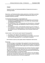 Schleswig-Holsteinischer Landtag - 16. Wahlperiode Drucksache 16/488 in Bezug auf die Ergebnisse des Kormoran-Monitorings, der zwischenzeitlich be- reinigt wurde. 2. Wie kam die Landesregierung zu den Aussagen „25 Prozent Umsatzverlust“ und „16 bis 69 Prozent Schadensumfang“, wenn es seit dem Bericht (Umdruck 15/728) keine neuen Untersuchungen gibt? Siehe Antwort zu Frage A) 1. 3. Wer hat 25 Prozent Umsatzverlust bzw. 16 bis 69 Prozent Schadensumfang für die Binne nfischerei errechnet? Bitte stellen Sie die Berechnung einschließlich der getroffenen Annahmen im Detail dar. Siehe Antwort zu Frage A) 1. Die aktuellen Modellrechnungen sind als Anlage beigefügt. 4. Gibt es wissenschaftliche Untersuchungen, die diese Berechnungen bestäti- gen. Wenn ja – welche? Siehe Antwort zu Frage A) 1. 5. Gibt es Fachleute, die vom Ministerium beauftragt worden sind, die diese Be- rechnungen für falsch ha lten? Wenn ja, welche? Nein, es sind keine externen Fachleute beauftragt worden. 6. Werden in dem zuständigen Ministerium abweichende Meinungen zum Um- satzverlust für die Fischerei durch Kormorane vertreten und wenn ja: Welche? Nein, siehe Antwort zu Frage A) 1. B) Der Beirat des Landesnaturschutzbeauftragten Roger Asmussen ist nach Vortrag des ALR Kiel zu folgender Einschätzung gekommen: „Die dem Beirat vorgelegten Informationen sind bezüglich der Datengrundla- gen … in wesentlichen Teilen nicht korrekt, unzutreffend interpretiert oder falsch kalkuliert. …“ 3
