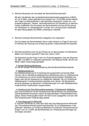 Drucksache 16/2875 Schleswig-Holsteinischer Landtag - 16. Wahlperiode 3. Wird bei Neubauten der Grundsatz der Barrierefreiheit beachtet? Mit dem Inkrafttreten des Landesbehindertengleichstellungsgesetzes (LBGG) am 16.12.2002, zuletzt geändert durch Gesetz vom 15.03.2006 wurden öffentli- che Träger zur Barrierefreiheit in den Bereichen Neubauten, Große Um- und Erweiterungsbauten, Verkehr, Informationstechnik und Verwaltung zur Barriere- freiheit verpflichtet. Der Grundsatz der Barrierefreiheit wird bei der Errichtung von Neubauten im Landeseigentum und den vom Land genutzten Gebäuden, für deren Bauaufgaben die GMSH zuständig ist, beachtet. 4. Wird bei Umbauten Barrierefreiheit mitgeplant und umgesetzt? Der Grundsatz der Barrierefreiheit (hierzu siehe Antwort zu Frage 3) wird auch im Rahmen der Planung und Umsetzung großer Umbaumaßnahmen beachtet. 5. Wird Barrierefreiheit auch bei der Förderung von Bauvorhaben mit öffentlichen Mitteln zum Kriterium gemacht? Falls nein, warum nicht? Die Beantwortung der Frage 5 wird von Zuwendungsgebern (hier die Ressorts) IM, MBF und MWV im Folgenden beantwortet. Die Ressorts MJAE, MLUR und MSGF haben Fehlanzeige gemeldet. a) Soziale Wohnraumförderung Ja, bei der sozialen Wohnraumförderung wird die Barrierefreiheit beachtet. b) Städtebauförderung Die Städtebauförderung ist im Schwerpunkt ausgerichtet auf bauliche Maß- nahmen, die zur Behebung städtebaulicher Missstände sowie zur Stabilisierung und Aufwertung von durch soziale Missstände benachteiligten Stadtteilen bei- tragen oder die der Anpassung von städtischen Gebieten, die von erheblichen städtebaulichen Funktionsverlusten betroffen sind, dienen. Die Berücksichti- gung der Belange von Menschen mit Behinderungen ist in den Städtebauförde- rungsrichtlinien verpflichtend vorgeschrieben. c) Umsetzung des Zukunftsinvestitionsgesetzes / Förderbereich Städtebau Das Innenministerium hat die Herstellung der Barrierefreiheit von bestehenden Gemeinbedarfseinrichtungen explizit als eigenständigen Fördertatbestand fest- gelegt. Dieses Förderangebot haben die Kommunen aufgegriffen und eine Viel- zahl entsprechender Förderanträge gestellt. d) Zukunftsprogramm Wirtschaft In manchen Richtlinien ist unter dem Dach des Zukunftsprogramms Wirtschaft das Thema Barrierefreiheit explizit berücksichtigt. So ist beispielsweise in der geltenden "Richtlinie zur Förderung öffentlicher touristischer Infrastruktureinrich- tungen" vom 07.12.2007 die Barrierefreiheit von Infrastruktureinrichtungen als Grundsatz verankert. 2