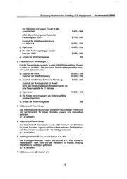 Schleswig-Holsteinischer Landtag- 13. Wahlperiode Drucksache 13/2897 von Mädchen und jungen Frauen in der Jugendarbeit 1.462,~ DM ABM-ÜberbrückungshilfeNerstärl<te Förden.mg aus ASH 11. 8.700,-DM Zuschuß für Arbeitslosenberatung aus ASH 118 12.000,- DM c) Eigenanteil 16.490,- DM d) Die nicht förderungsfähigen Kosten betrugen 1994 2.096,-DM e) Anzahl der Vereinsmitglieder 50 3. Frauenzentrum Schleswig e.V. Für die Frauenberatungsstelle wurden 1994 fördungsfähige Kosten in Höhe von 143.990,- DM anerkannt. Welche Mittel gezahlt wurden, wird durch a) beantwortet. a) Zuschuß MFBWS 55.000,::- DM Zuschuß der Stadt Schleswig 24.000,- DM b) Zuschuß des Kreises Schleswig-Fiensburg 9.000,-DM Zuschuß der Bundesanstalt für Arbeit: 50 % des förderungsfähigen Arbeitsentgeltes für eine Personalstelle für 11 Monate c) Eigenanteil 15.239,- DM. d) Die Kosten sind insgesamt als förderungsfähig anerkannt worden. e) Anzahl der Vereinsmitglieder 68 4. Mädchencafe Neumünster Das Mädchencafe Neumünster wurde im Haushaltsjahr 1994 nicht von der Ministerin für Arbeit, Soziales, Jugend und Gesundheit gefördert. a)- e) entfallen. 5. Mädchentreff Neumünster Der Mädchentreff Neumünster wurde 1994 nicht von der Ministerin für Arbeit, Soziales, Jugend und Gesundheit gefördert. Der Mädchen· treff Neumünster wurde zum 31. 12. 1993 geschlossen. a) - e) entfallen. 6. Arbeitsgemeinschaft Frauen und Schule e.V., Kiel Die Arbeitsgemeinschaft Frauen und Schule e.V., Kiel, wurde im Haushaltsjahr 1994 nicht von der Ministerin für Frauen, Bildung, Weiterbildung und Sport gefördert. a)- e) entfallen. 7. Mädchenverein ,,Zimtzicke" e.V. 3