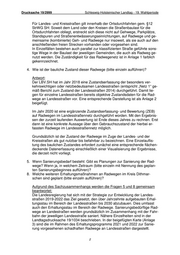 Drucksache 19/2999 Schleswig-Holsteinischer Landtag - 19. Wahlperiode Für Landes- und Kreisstraßen gilt innerhalb der Ortsdurchfahrten gem. §12 StrWG SH: Soweit dem Land oder den Kreisen die Straßenbaulast für die Ortsdurchfahrten obliegt, erstreckt sich diese nicht auf Gehwege, Parkplätze, Standspuren und Straßenentwässerungseinrichtungen, auf Radwege und ge- meinsame (kombinierte) Geh- und Radwege nur insoweit, als sie auch auf den anschließenden freien Strecken vorhanden oder vorgesehen sind. In Einzelfällen bestehen auch parallel zur klassifizierten Straße geführte sons- tige Wege in der Baulast der jeweiligen Gemeinden, die auch als Radweg ge- nutzt werden. Die Zuständigkeit für das Radwegenetz ist in Anlage 1 farblich gekennzeichnet. 4. Wie ist der bauliche Zustand dieser Radwege (bitte einzeln aufführen)? Antwort: Der LBV.SH hat im Jahr 2018 eine Zustandserfassung der besonders ver- kehrswichtigen oder netzbedeutsamen Landesstraßen (entspricht „Netz 1“ ge- mäß Bericht zum Zustand der Landesstraßen 2014) durchgeführt. Damit lie- gen für einzelne Landesstraßen bereits objektive Zustandsdaten für die Rad- wege an Landesstraßen vor. Eine entsprechende Darstellung ist als Anlage 2 beigefügt. Im Jahr 2020 ist eine ergänzende Zustandserfassung- und Bewertung (ZEB) auf Radwegen im Landesstraßennetz durchgeführt worden. Mit den Ergebnis- sen der zurzeit laufenden Auswertung ist Ende dieses Jahres zu rechnen. Erst dann ist eine konkrete Aussage über den Gebrauchszustand der hierbei er- fassten Radwege im Landesstraßennetz möglich. Grundsätzlich ist der Zustand der Radwege im Zuge der Landes- und der Kreisstraßen als gut nutzbar bis befahrbar zu bezeichnen. Eine Einzelauflis- tung des baulichen Zustandes erfordert zunächst eine entsprechende flächen- deckende Datenerfassung einschließlich einer Visualisierung der Ergebnisse, die derzeit nicht vorliegt. 5. Wenn Sanierungsbedarf besteht: Gibt es Planungen zur Sanierung der Rad- wege? Wenn ja, in welchem Zeitraum (bitte einzeln mit Nennung des geplan- ten Sanierungsbeginnes aufführen)? 8. Welche weiteren Erhaltungsmaßnahmen an Radwegen im Kreis Dithmar- schen sind geplant (bitte einzeln aufführen)? Aufgrund des Sachzusammenhangs werden die Fragen 5 und 8 gemeinsam beantwortet: Die Landesregierung hat sich mit der Strategie zur Entwicklung der Landes- straßen 2019-2022 das Ziel gesetzt, den über Jahrzehnte aufgebauten Erhal- tungsstau im Bereich der Landesstraßen bis 2030 abzubauen. Dies umfasst auch den Erhaltungsstau im Bereich der Radwege. Sanierungsbedürftige Rad- wege an Landestraßen werden grundsätzlich im Zusammenhang mit der Fahr- bahn der jeweiligen Landesstraße saniert. Nähere Einzelheiten sind in der Landtagsdrucksache 19/1034 beschrieben. In der beigefügten Karte (Anlage 3) sind die im Rahmen des Erhaltungsprogramms 2021 und 2022 zur Sanie- rung vorgesehenen schadhaften Radwege an Landesstraßen dargestellt. 2