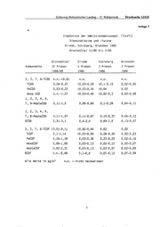 Schleswig-Holsteinischer Landtag- 12. Wahlperiode Drucksache 12/625 Anlage 3 Ergebnisse der lnrnissionsmessungen (Luft) Dibenzodioxine und -furane Glinde, Schleswig, Brunsbek 1986 Brunsbüttel 11/88 bis 4/89 Brunsbüttel G1i nde Schleswig Brunsbek Komponente 10 Proben 5 Proben 3 Proben 2 Proben 1988/89 1986 1986 1986 2, 3' 7' 8-TCDD n.n.-<0,01 n.n . n.n. n.n. TCDD 0,04-0,27 <0,03-0,29 <0.1-0,15 0,02-0,05 PeCDD 0,03-0,22 <0,03-0,34 <0 ,04 0,02 Hexa CDD n.n.-1,27 <0,03-0,46 <0,02-0,2 0,02-0,08 1' 2, 3, 4, 6, 7, 9-HeptaCDD 0,11-1,5 0,05-0,60 0,1-0,28 0,04-0,11 1, 2, 3, 4, 6, 7, 8-HeptaCDD 0,11-1,57 0,11-0,67 0,15-0,37 0,04-0,12 OCDD 0,31-3,1 0,4-2,4 0,69-1,0 0,13-0,47 2, ~ 7, 6-TCDF <O, 01-0,11 ~. <0,02-0,04 0,02 0, 02 TCDF 0,1-1,14 <0,03-0,59 0,28-0,39 0,02-0,23 PeCDF 0,16-1,18 0,03-0,36 0,23-0,25 0,02-0,16 HexaCDF 0,06-1,50 0,03-0,13 0,02-0,12 0,02-0,07 HeptaCDF 0,02-2,31 0,03-0,13 0,03-0,07 0,02-0,05 OCDF n.n.-0,48 0,1-0,6 0,07-0,12 0,07-0,09 Alle Werte in pg/m' n.n. = nicht nachweisbar 7